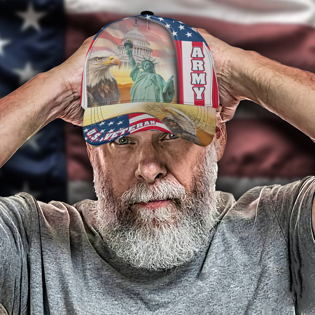 U.S. Veteran – Patriotic All-Over Print Cap Honor your service and celebrate your pride with...