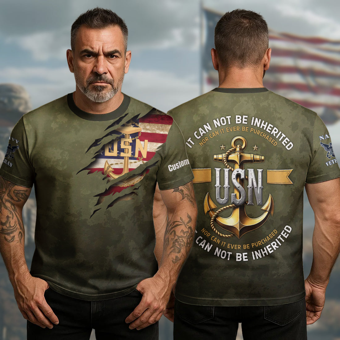 Navy Pride – Customizable All-over print T-shirt Honor your service and showcase your pride with...