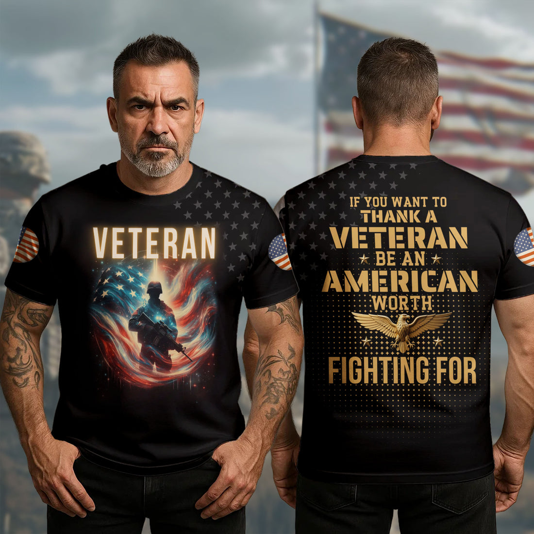 Thank a Veteran Be an American Worth Fighting For Live Free with Honor and Patriotism All-over Print T-Shirt