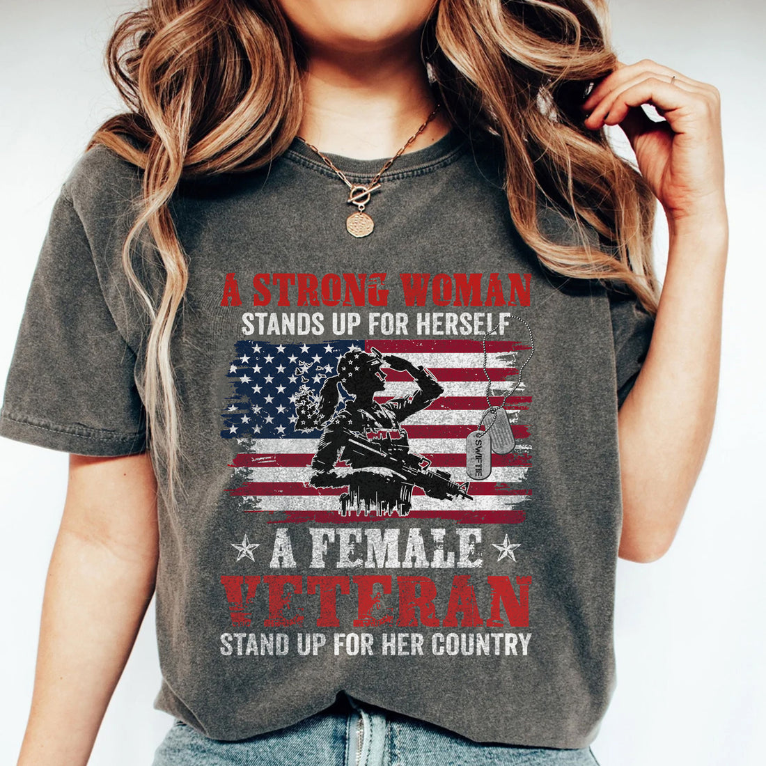 A Strong Woman – Veteran Tribute T-Shirt Honor the courage and strength of female veterans...