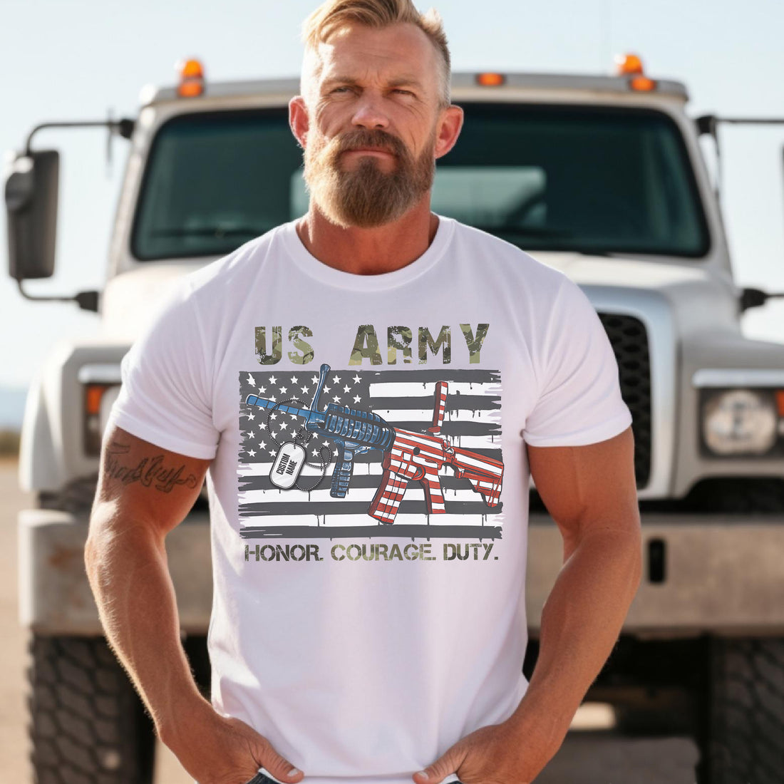 Honor Courage Duty Proud US Military Veteran Patriotic Service Personalized T-Shirt