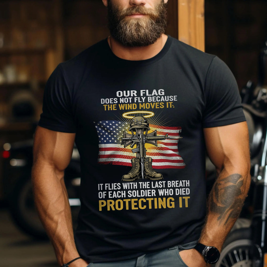 Our Flag Flies with the Last Breath of Each Soldier Who Died Protecting It Veteran Tribute T-Shirt