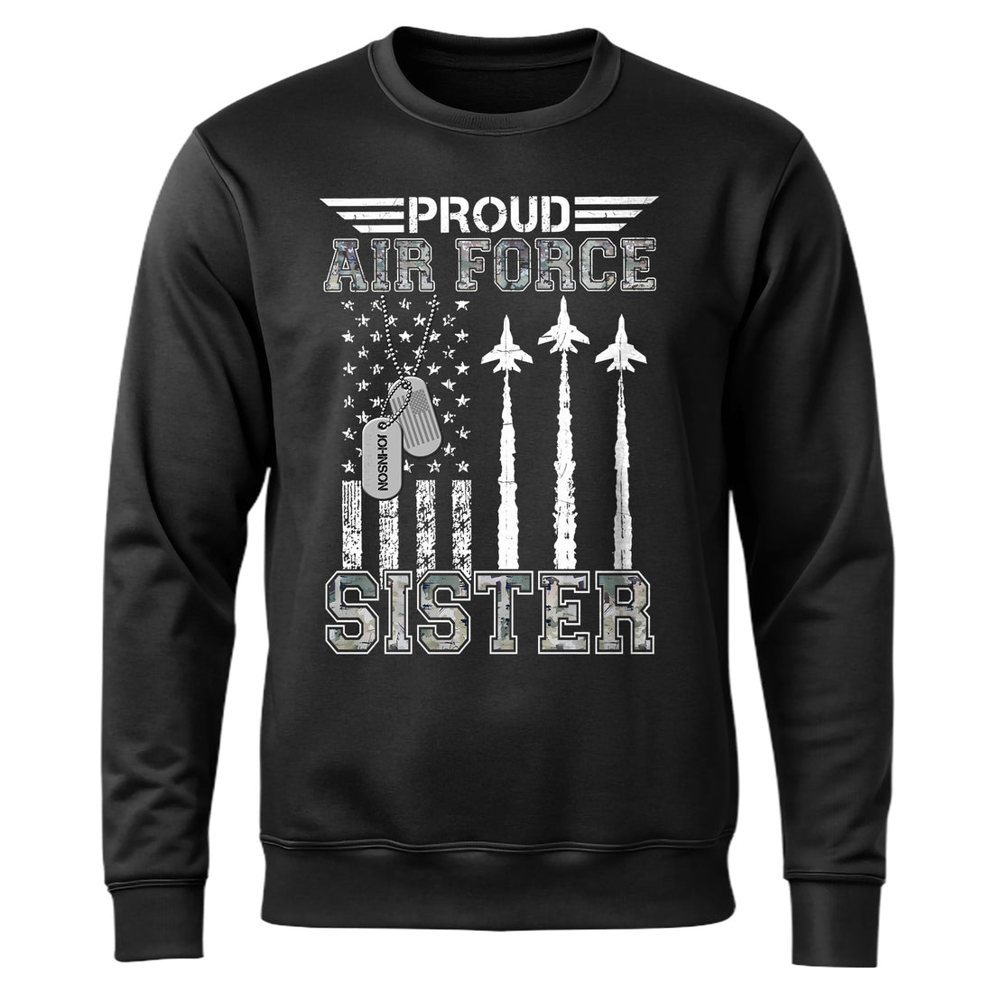 Proud Air Force Sister – Sweatshirt Honor the strength and dedication of our Air Force...