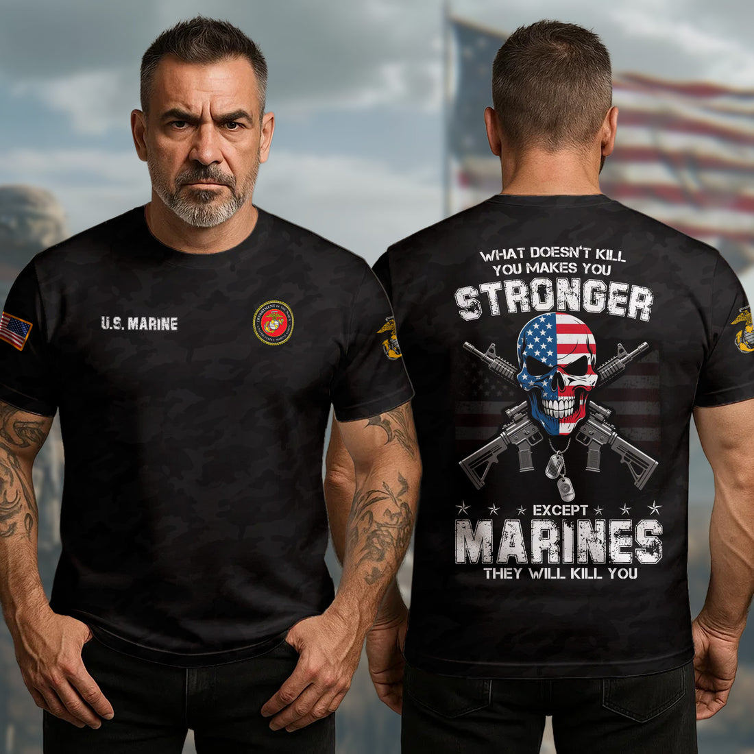 What Doesn’t Kill You Makes You Stronger Except Marines They Will Kill You Veteran Humor Bold All-over Print T-Shirt