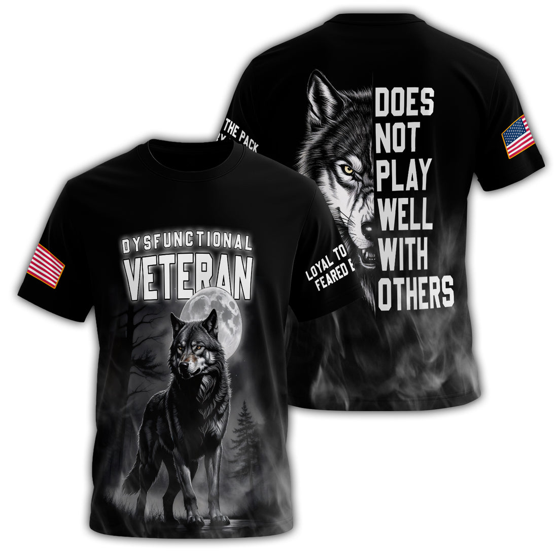 Dysfunctional Veteran – Patriotic All-over print T-shirt Honor the spirit of service with our "Dysfunctional...