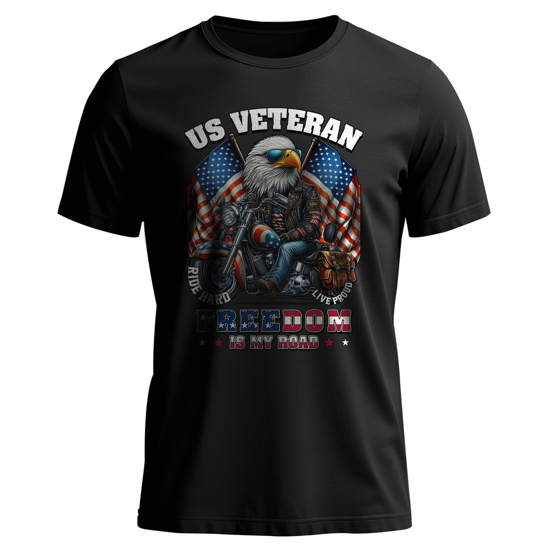 US Veteran – Freedom Is My Road T-Shirt Honor your service and embrace the spirit...