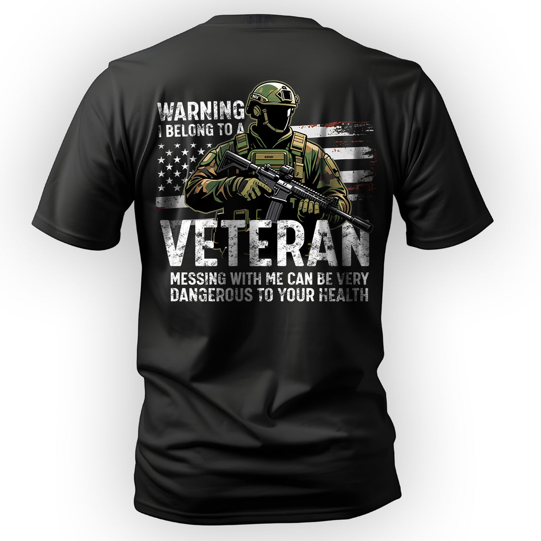 Warning – Proud Veteran T-Shirt Honor the spirit of service and sacrifice with this striking...