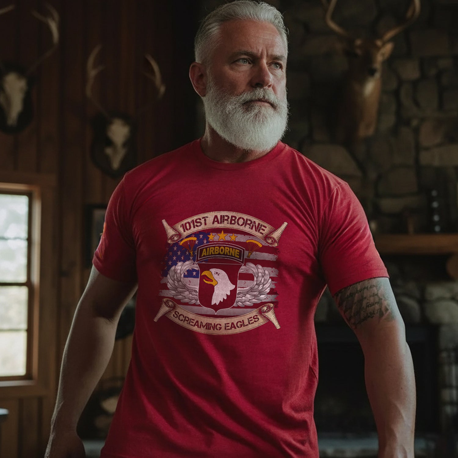 Celebrate the spirit of courage and service with our 101st Airborne T-Shirt, a tribute to those who defend our freedom.