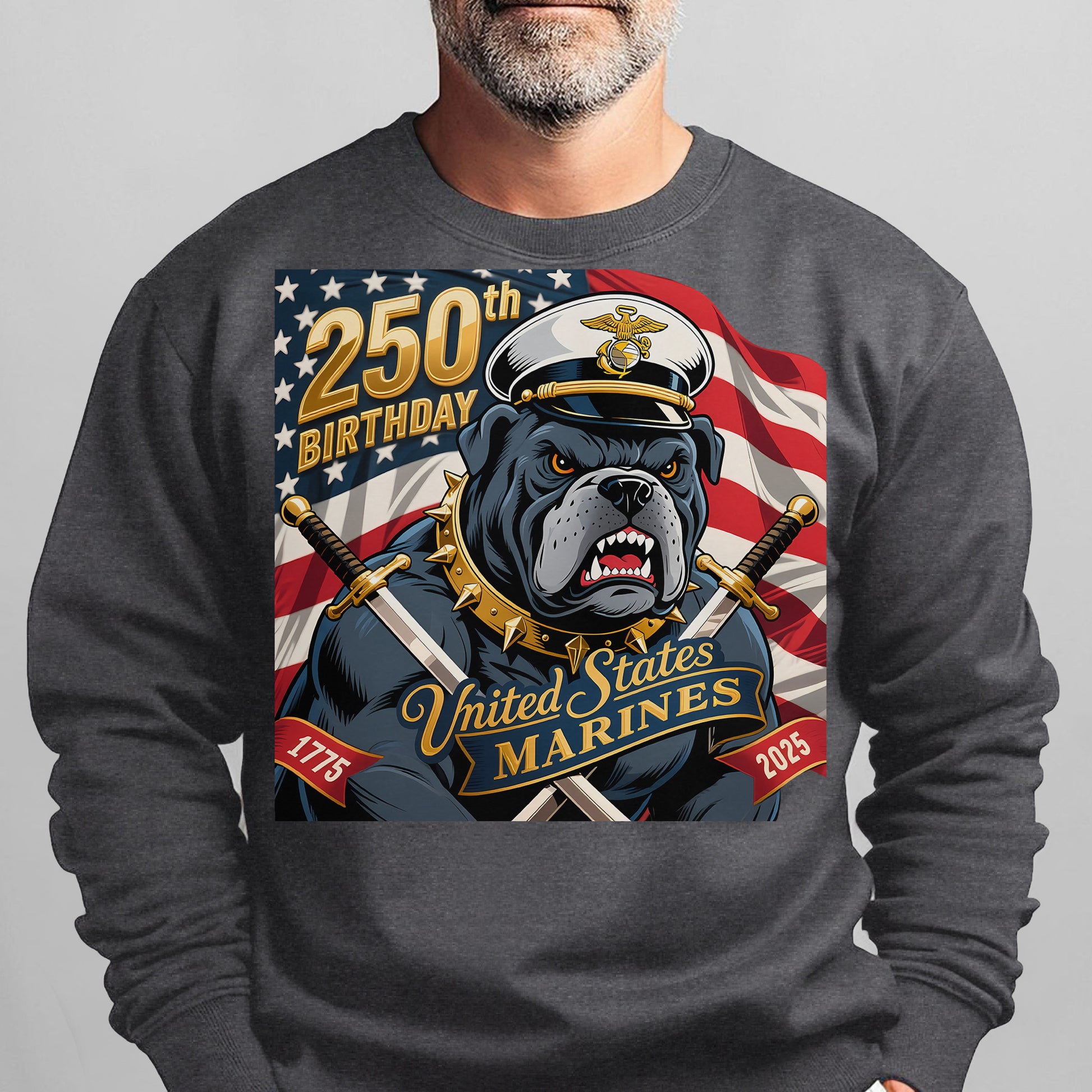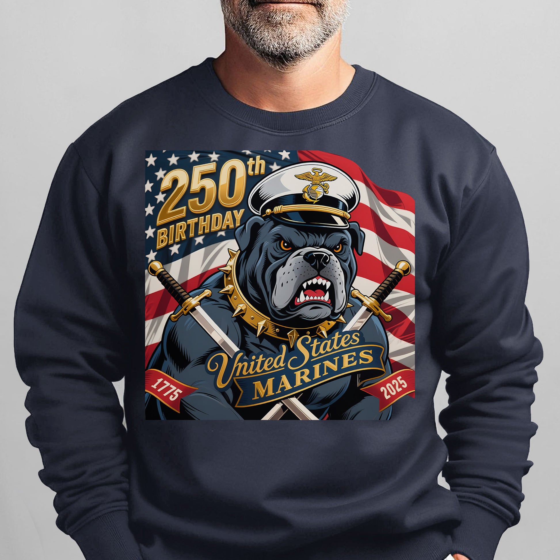 Honor the legacy of the U.S. Marines with this striking sweatshirt, designed to celebrate 250 years of bravery and dedication.