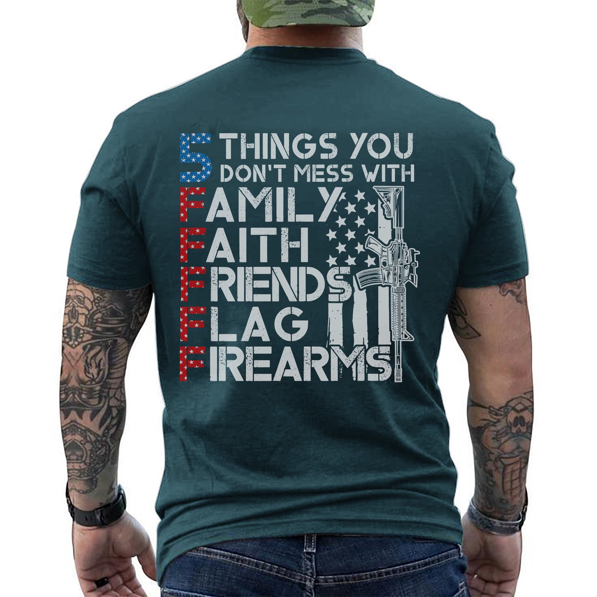 5 Things You Don’t Mess With Family Faith Friends Flag Firearms US Military Veteran T-Shirt