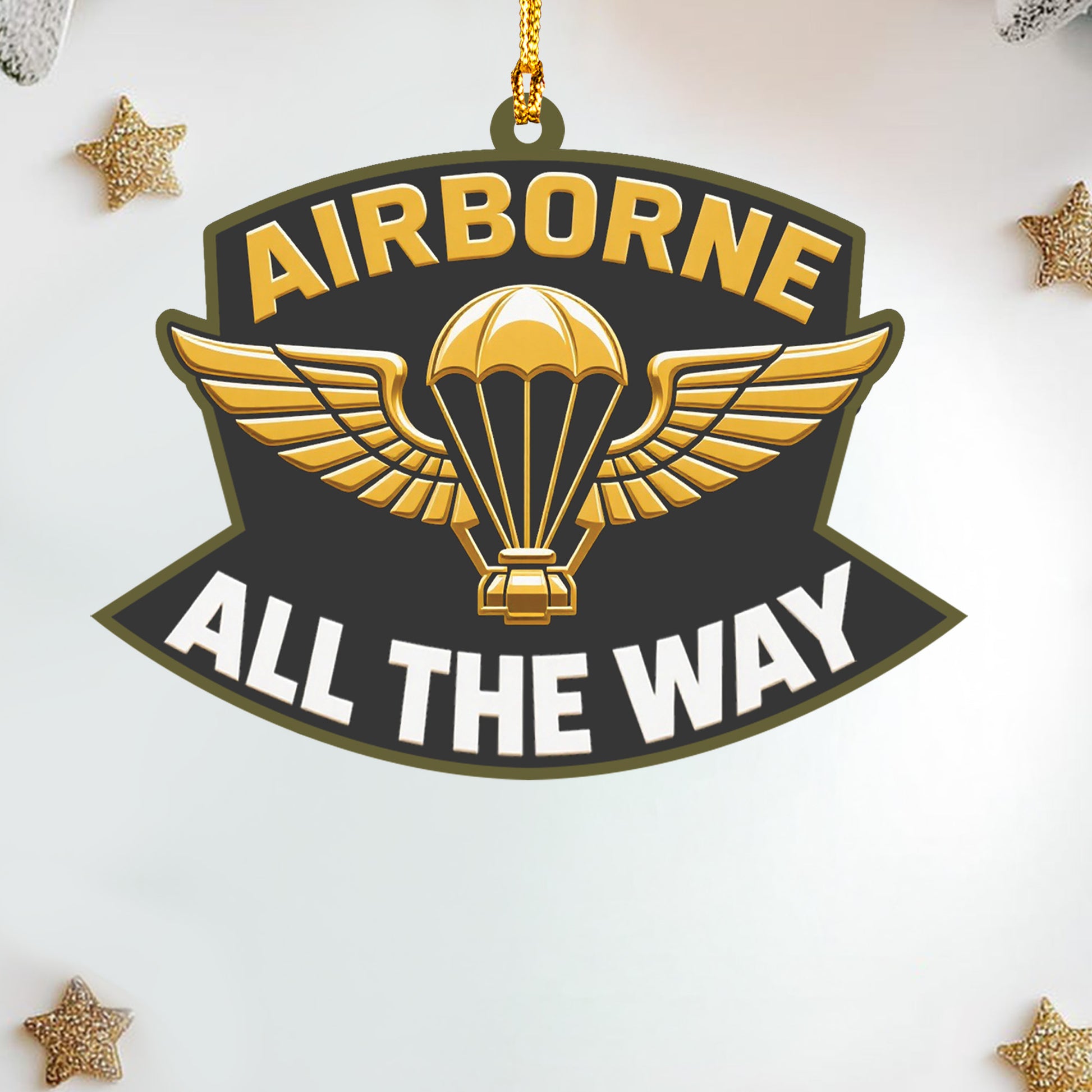 Honor the bravery and commitment of our airborne heroes with this striking ornament, a symbol of courage and dedication.