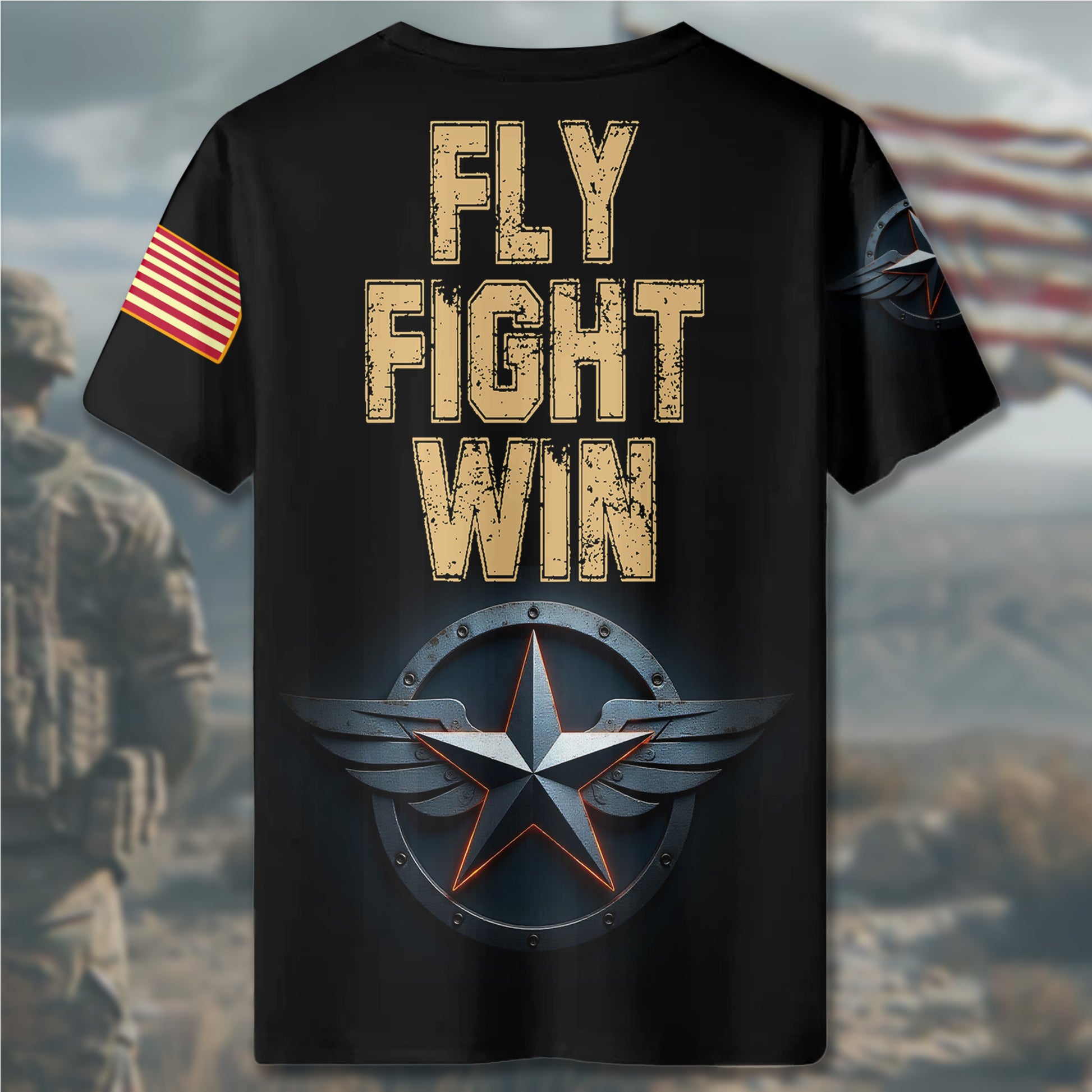 Honor service and celebrate pride in this bold all-over print t-shirt made for everyday wear. Designed for veterans, supporters, and anyone who wears their values with pride.