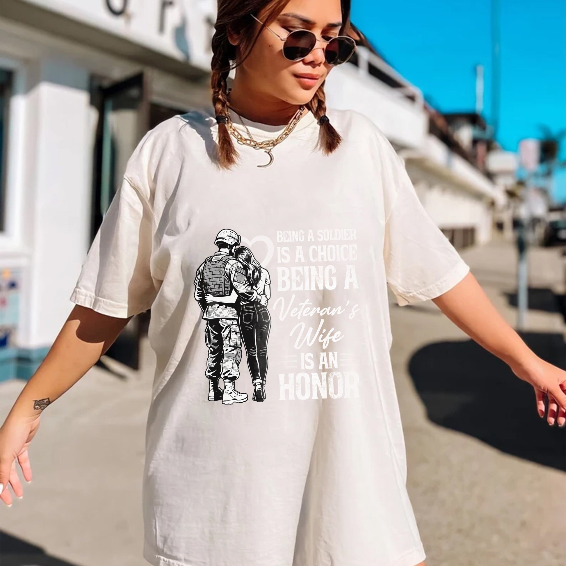 This shirt embodies the courage and commitment of military families, celebrating the unique bond between veterans and their partners. Wear it proudly as a testament to love, strength, and honor.