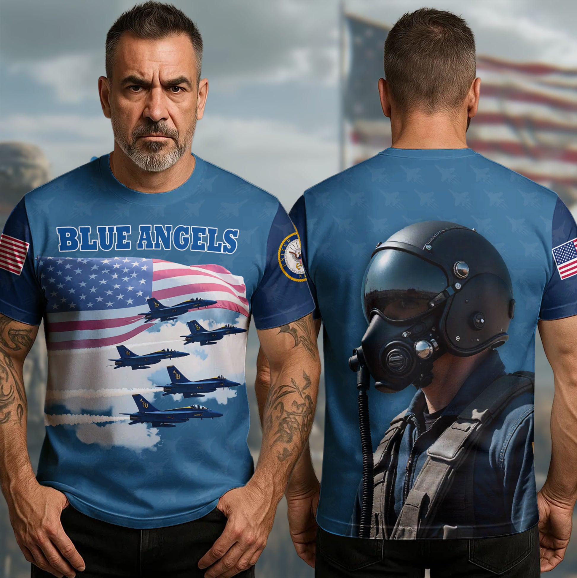 Honor the bravery and dedication of our heroes with this striking Blue Angels T-shirt, a tribute to the elite naval aviators who inspire us all.