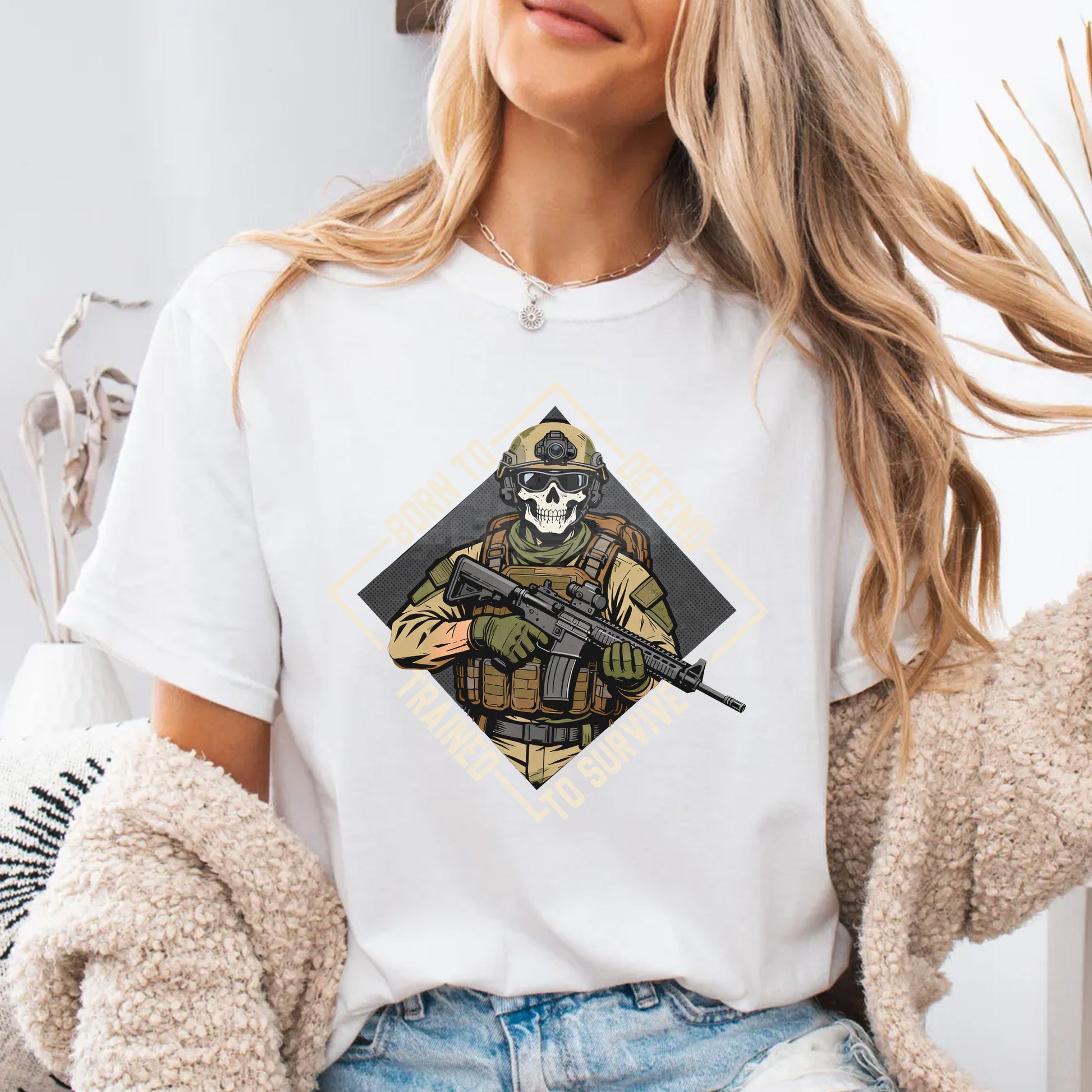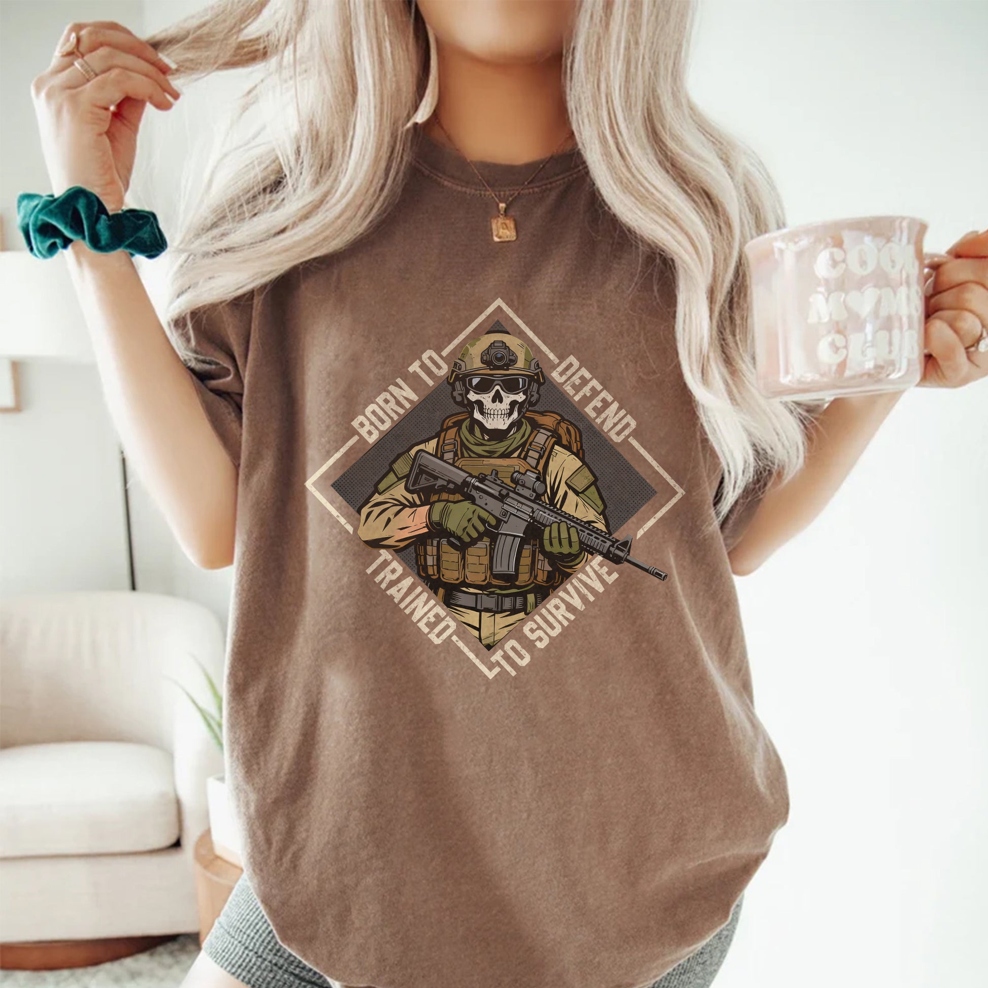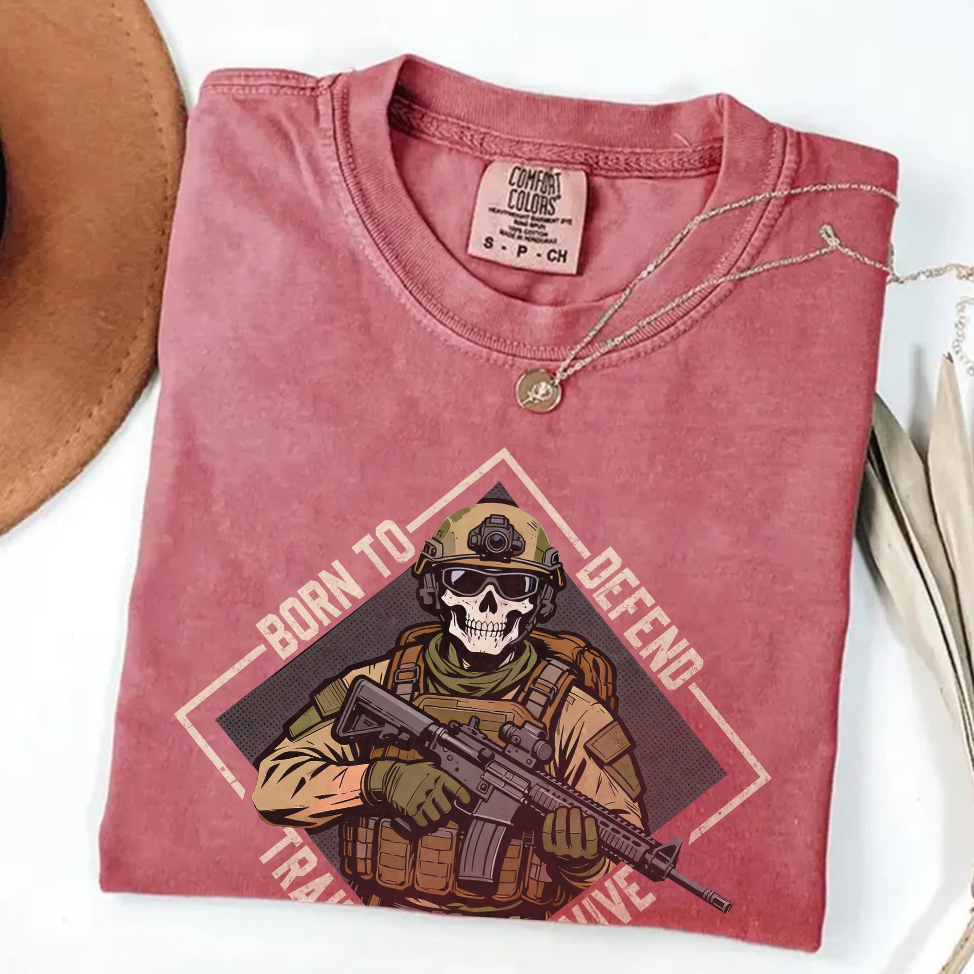 Honor the spirit of bravery and resilience with our "Born to Defend" t-shirt, a tribute to those who serve and protect.