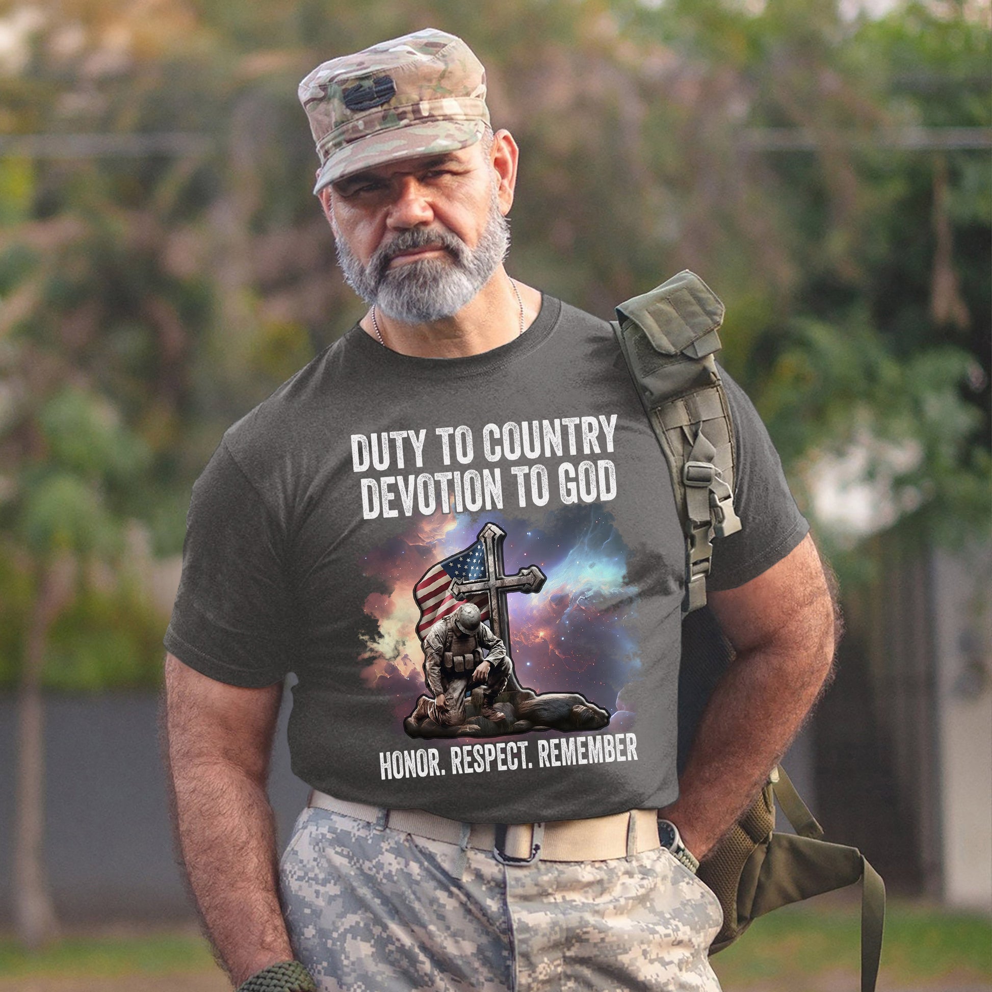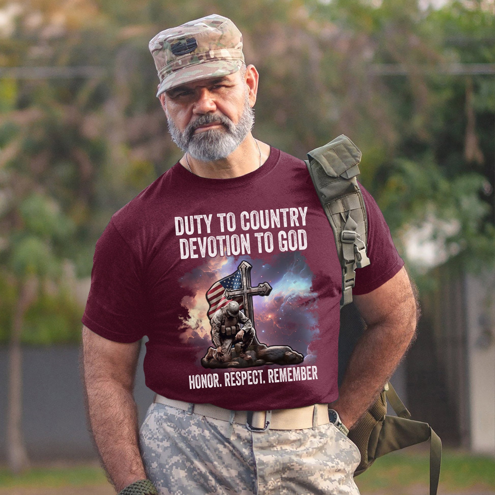 Duty to Country Devotion to God Patriotic American Flag Veteran Tribute T-Shirt