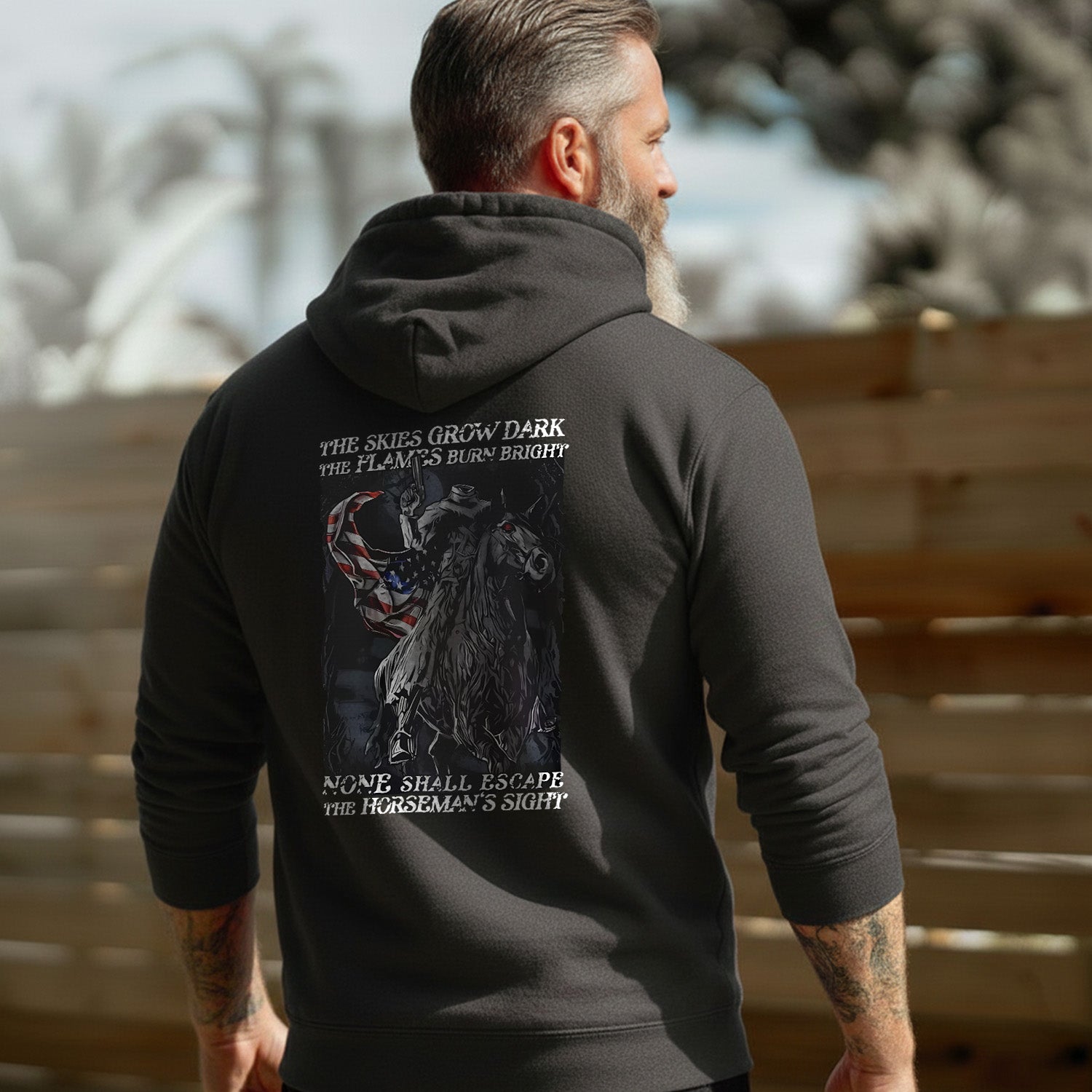 Embrace the spirit of courage and sacrifice with our "The Horseman's Sight" hoodie, designed for those who honor our heroes. This piece serves as a tribute to the brave souls who protect our freedom.