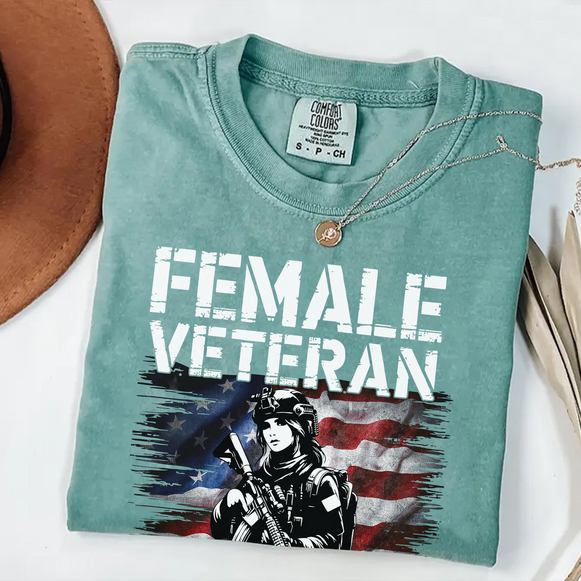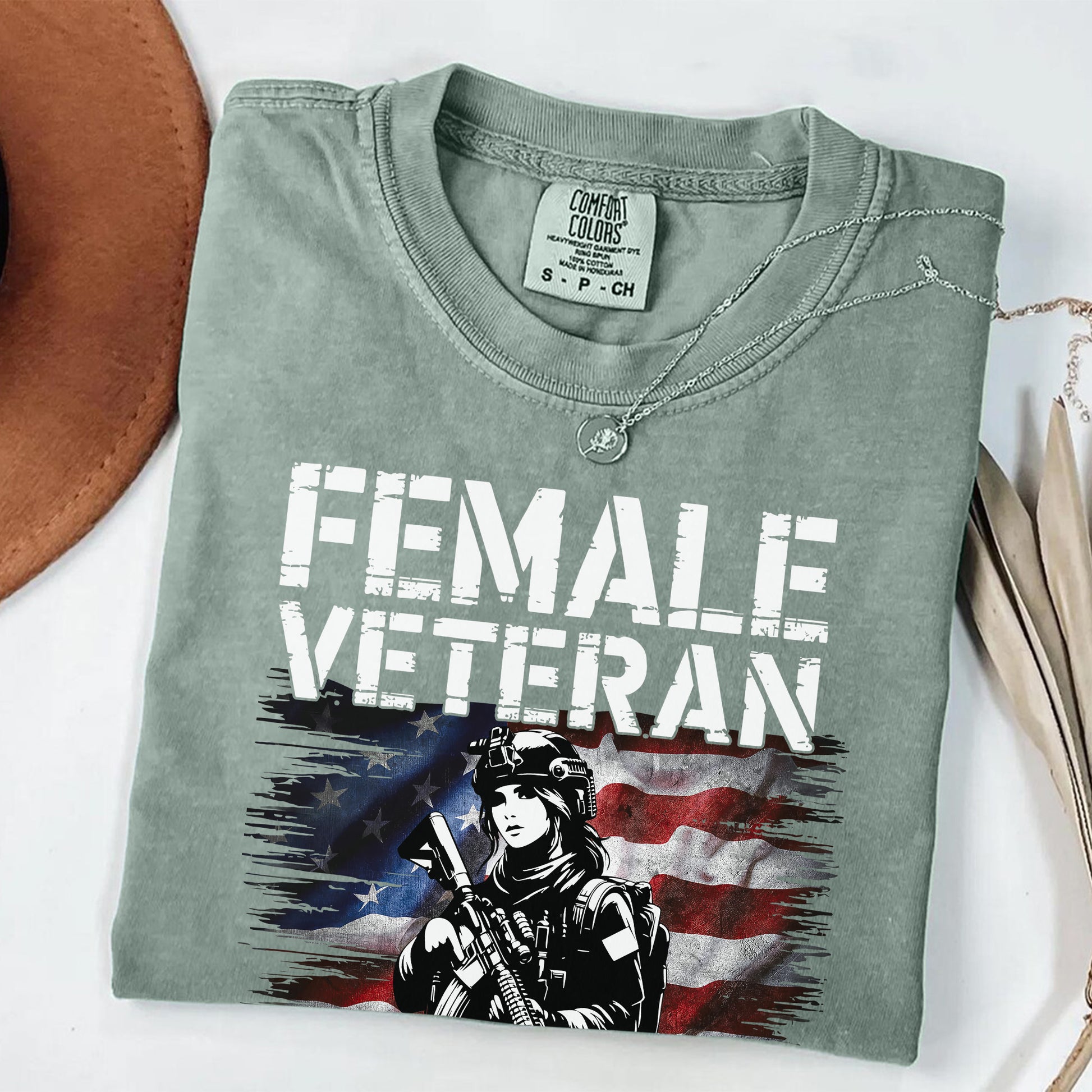 Celebrate the courage and dedication of our female veterans with this powerful t-shirt. A tribute to those who have served, it embodies pride and resilience.