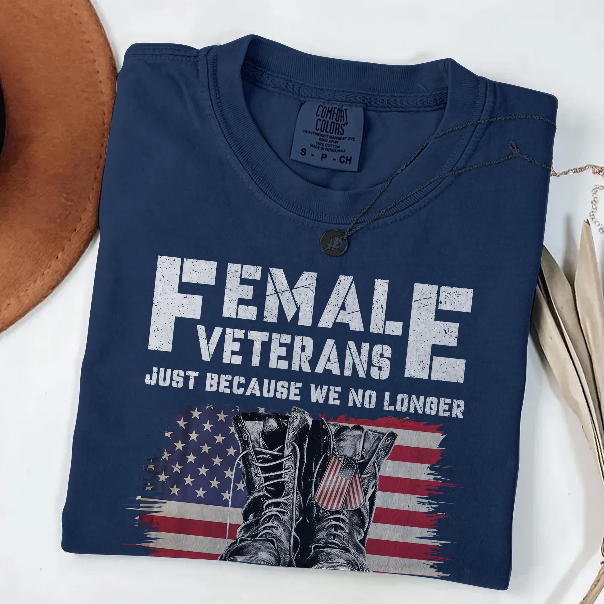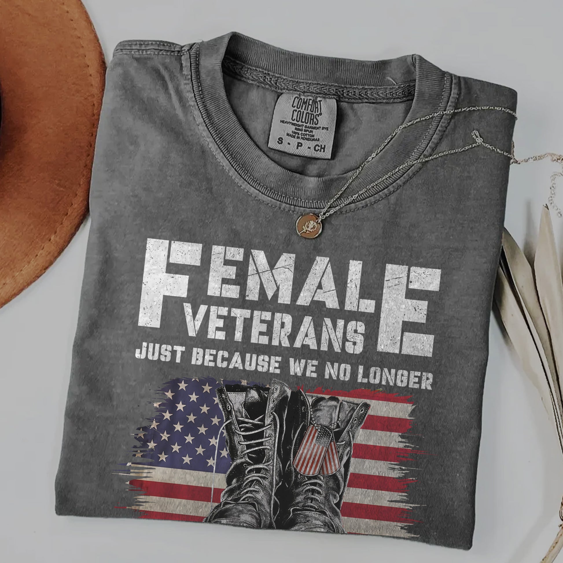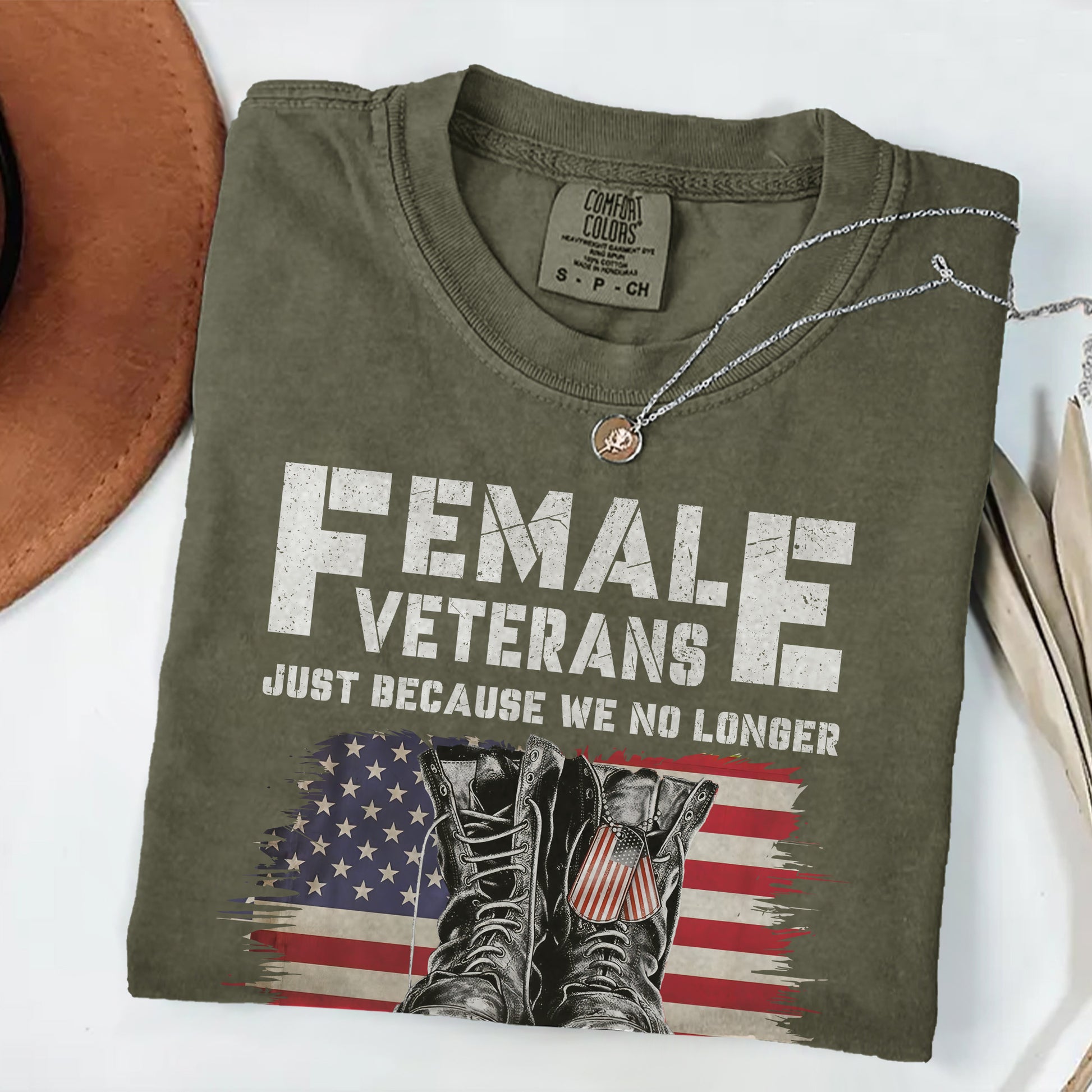 Celebrate the courage and resilience of female veterans with this powerful T-shirt. A tribute to those who have served, it embodies pride and strength.