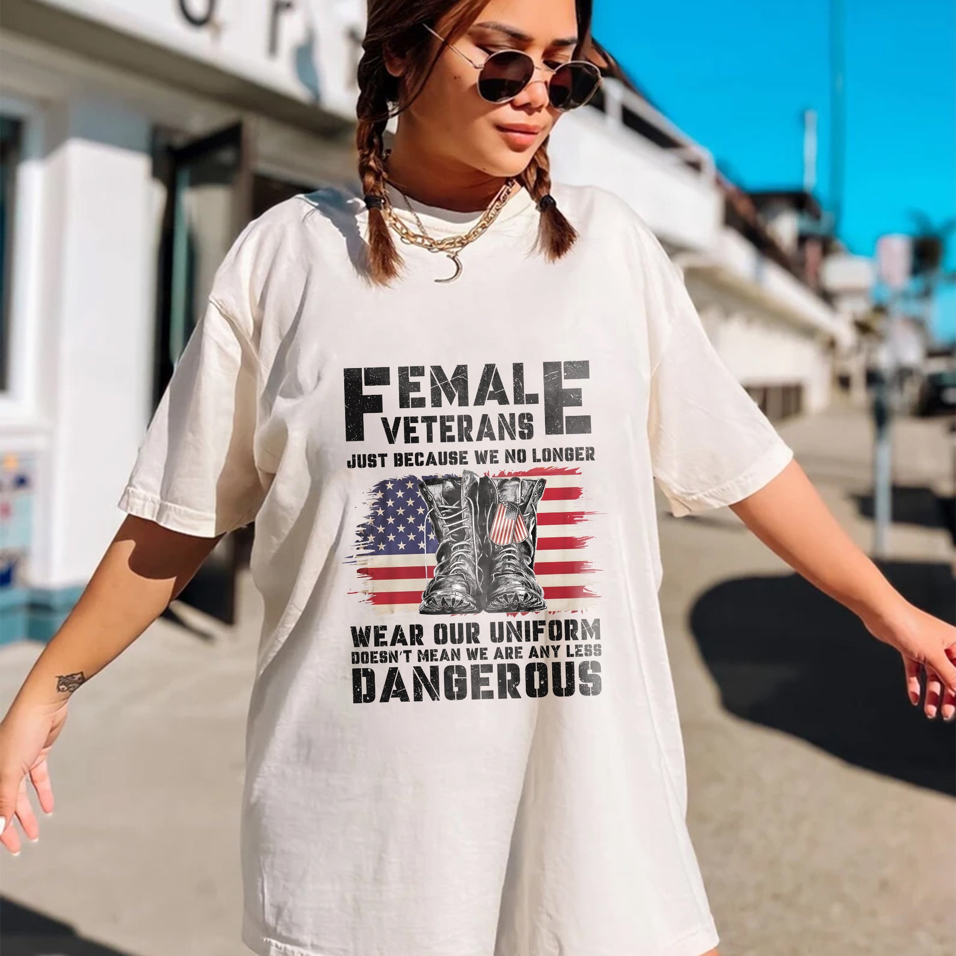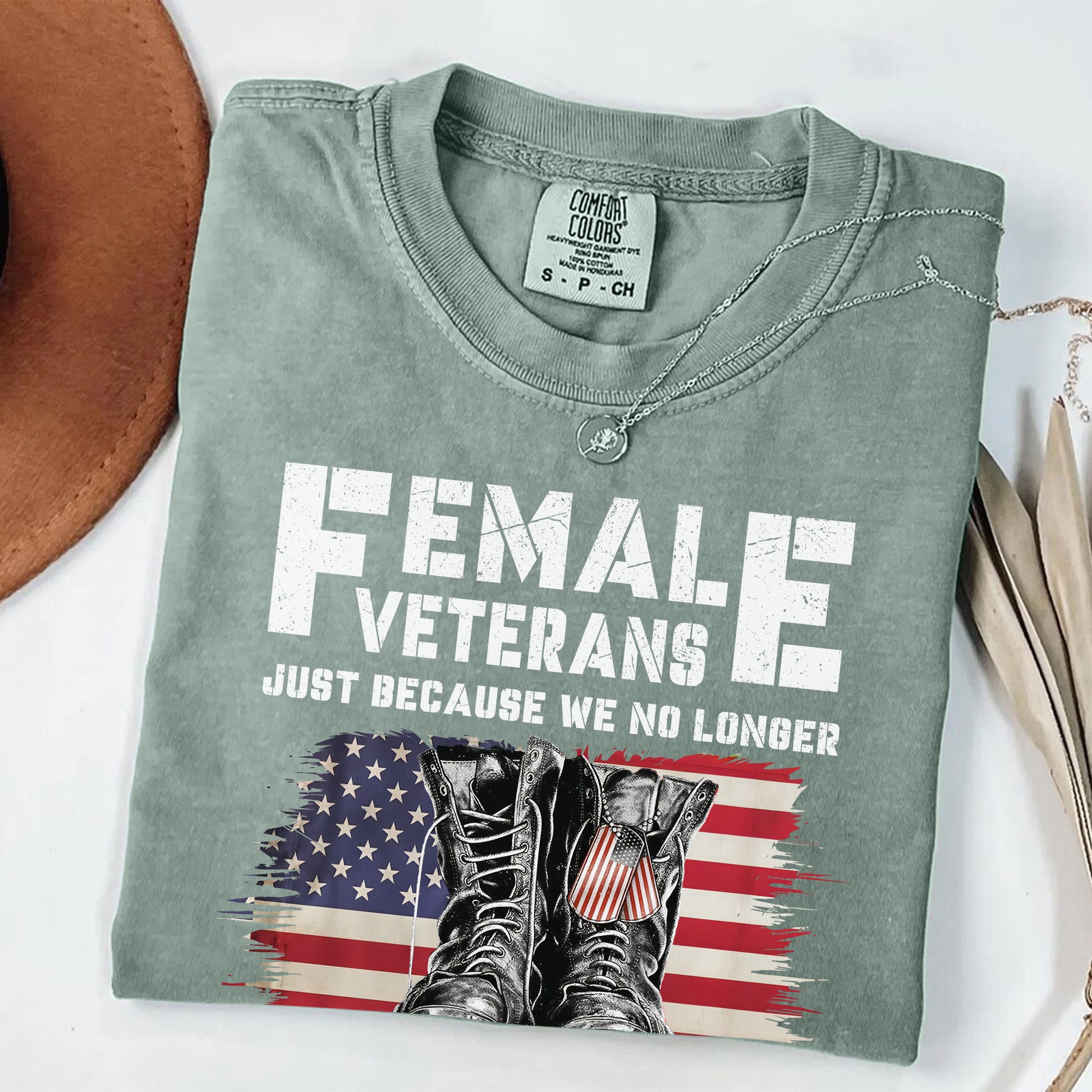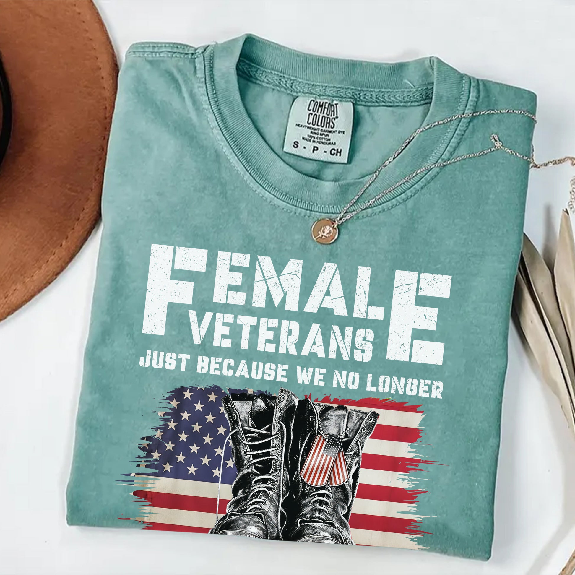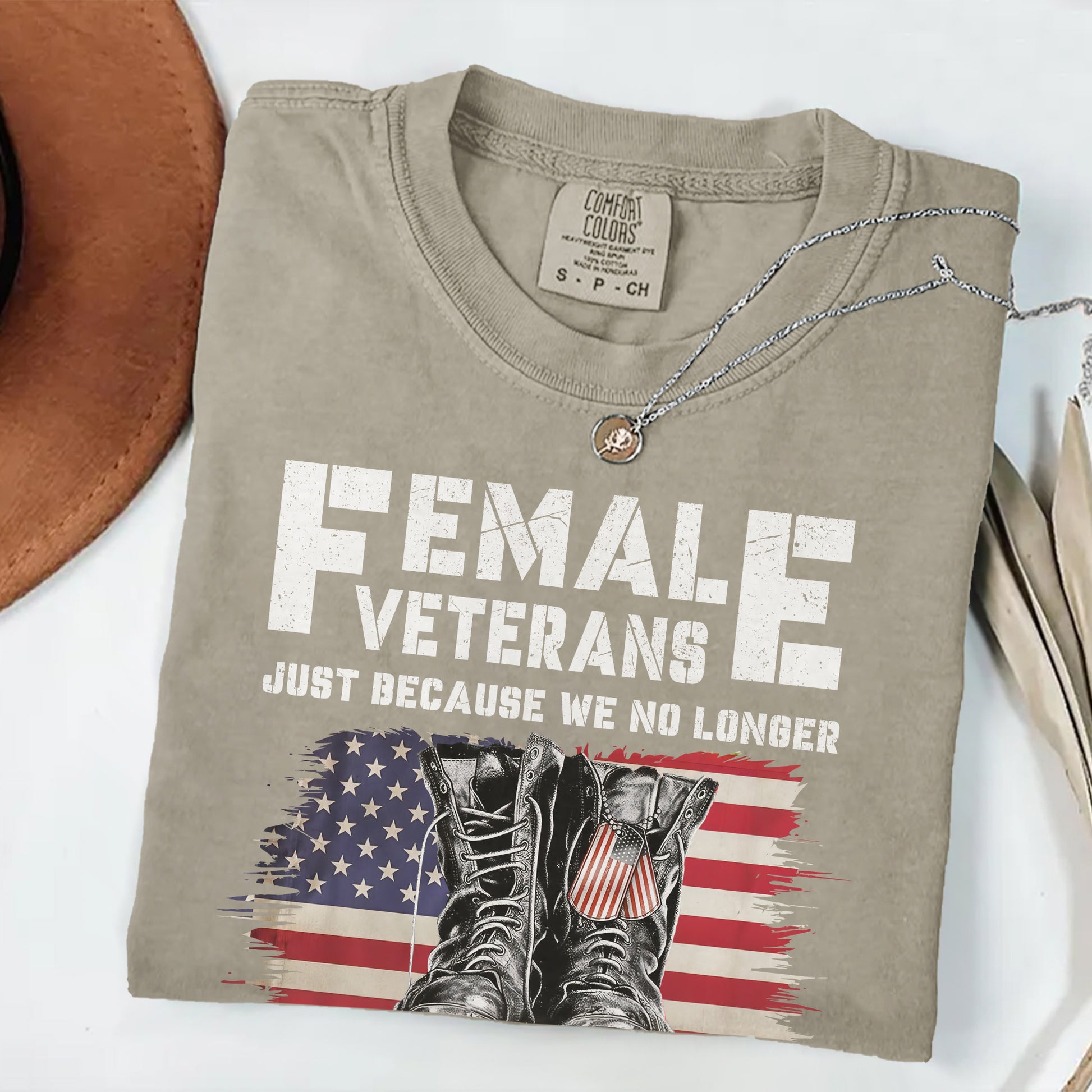 Celebrate the courage and resilience of female veterans with this powerful T-shirt. A tribute to those who have served, it embodies pride and strength.