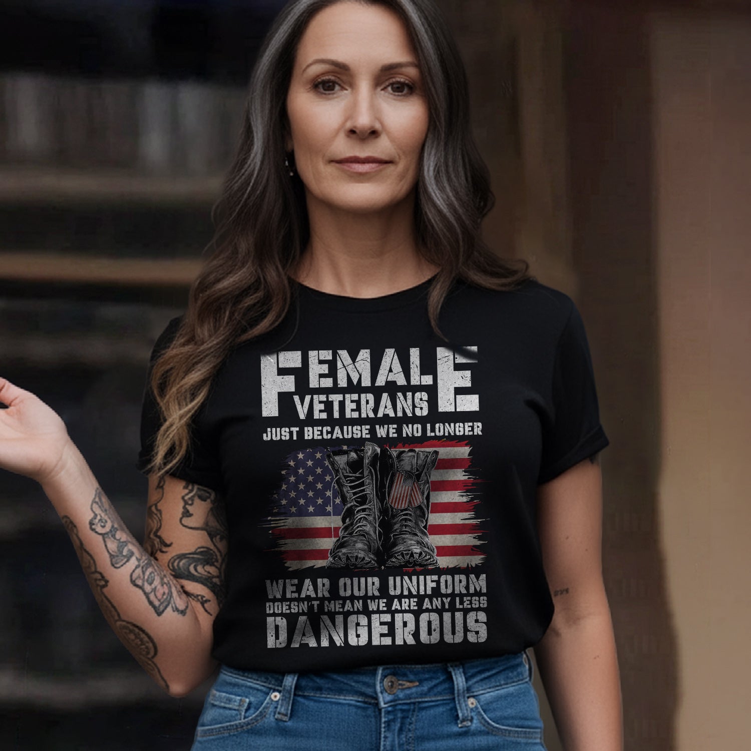 Celebrate the courage and resilience of female veterans with this empowering t-shirt. Wear it with pride as a testament to service and dedication.