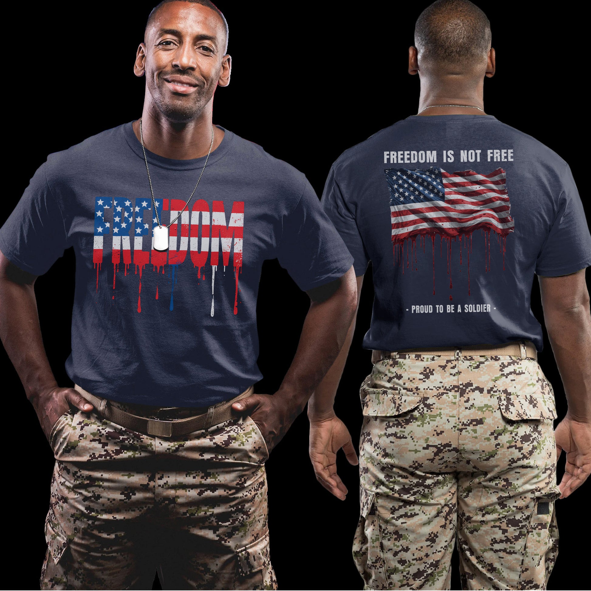 Freedom Is Not Free Freedom Proud to Be a Soldier US Military Veteran Patriotic T-Shirt