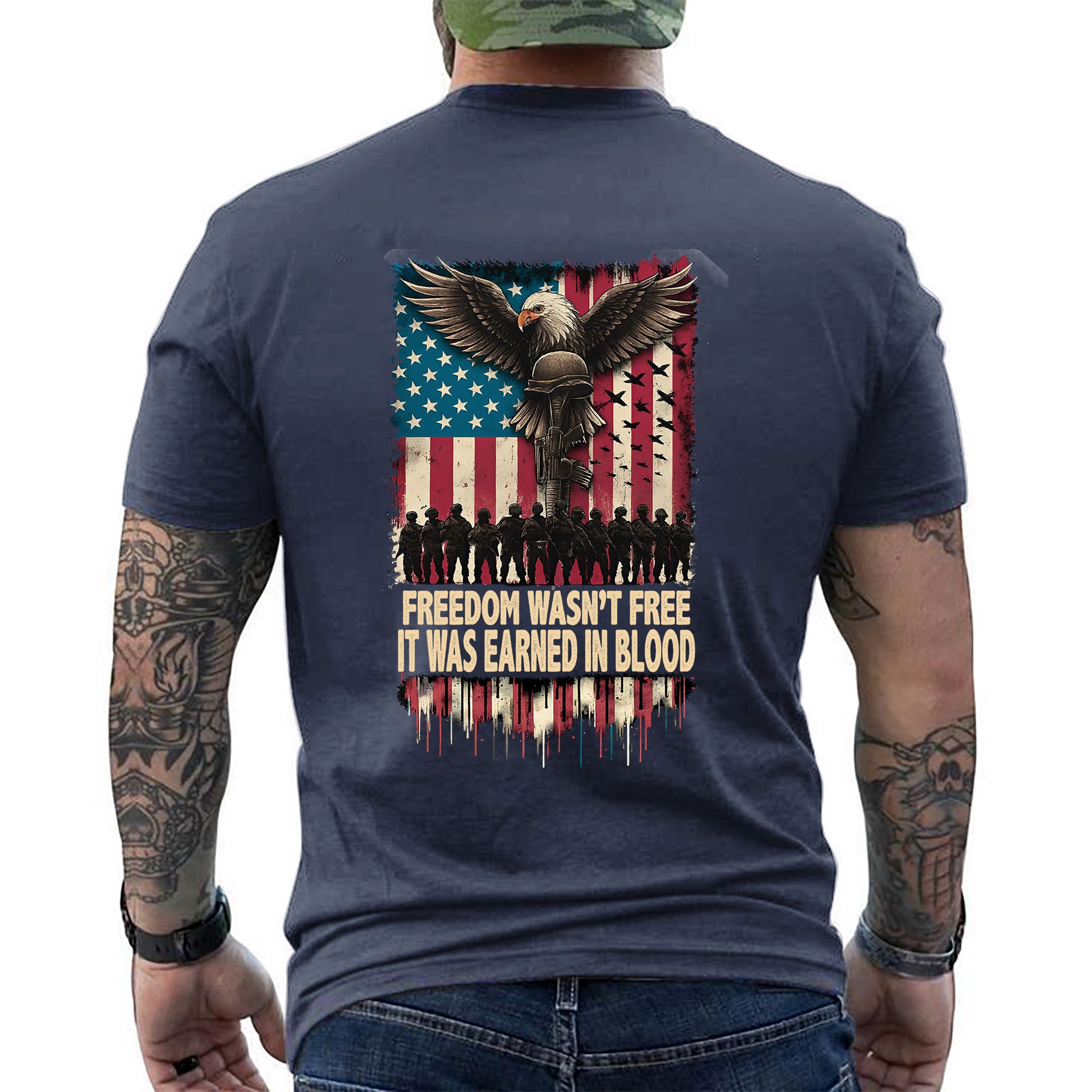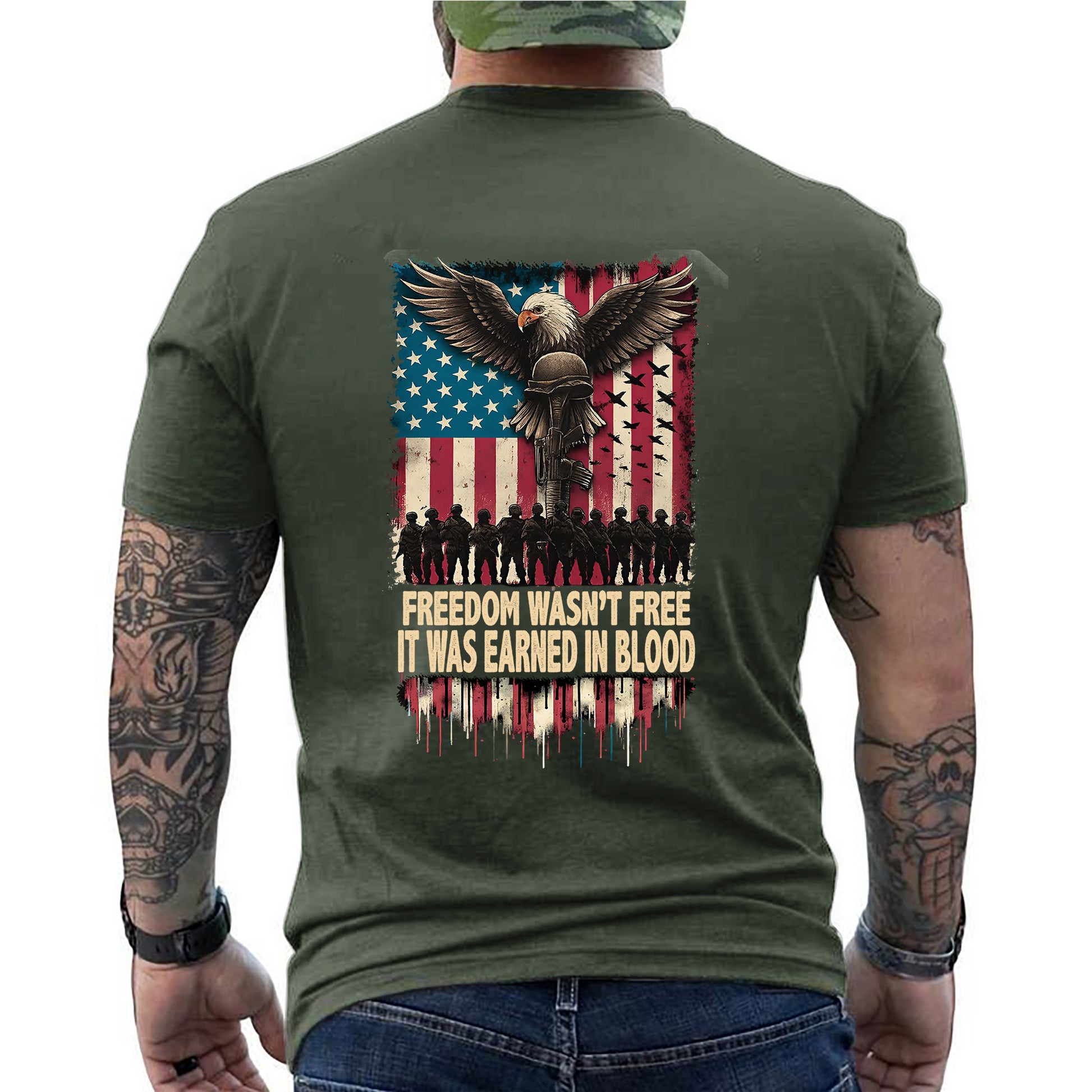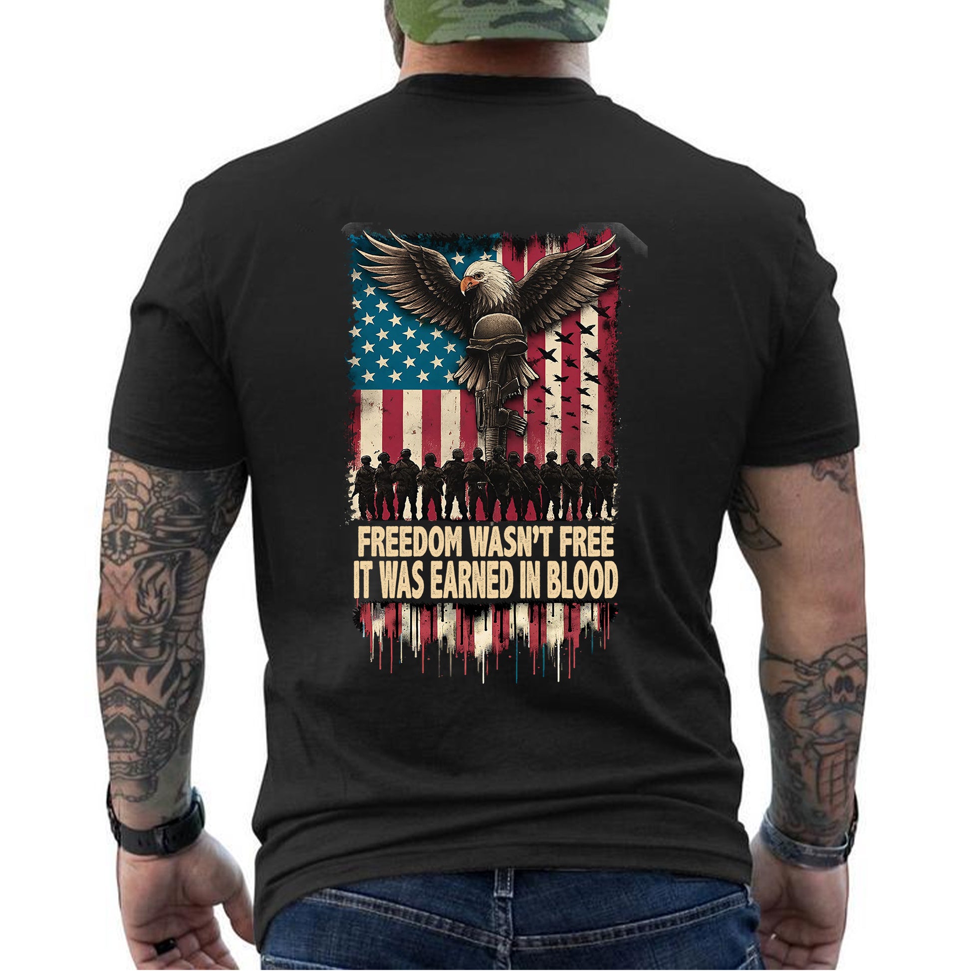 Freedom Wasn’t Free It Was Earned in Blood Patriotic Military Tribute T-Shirt
