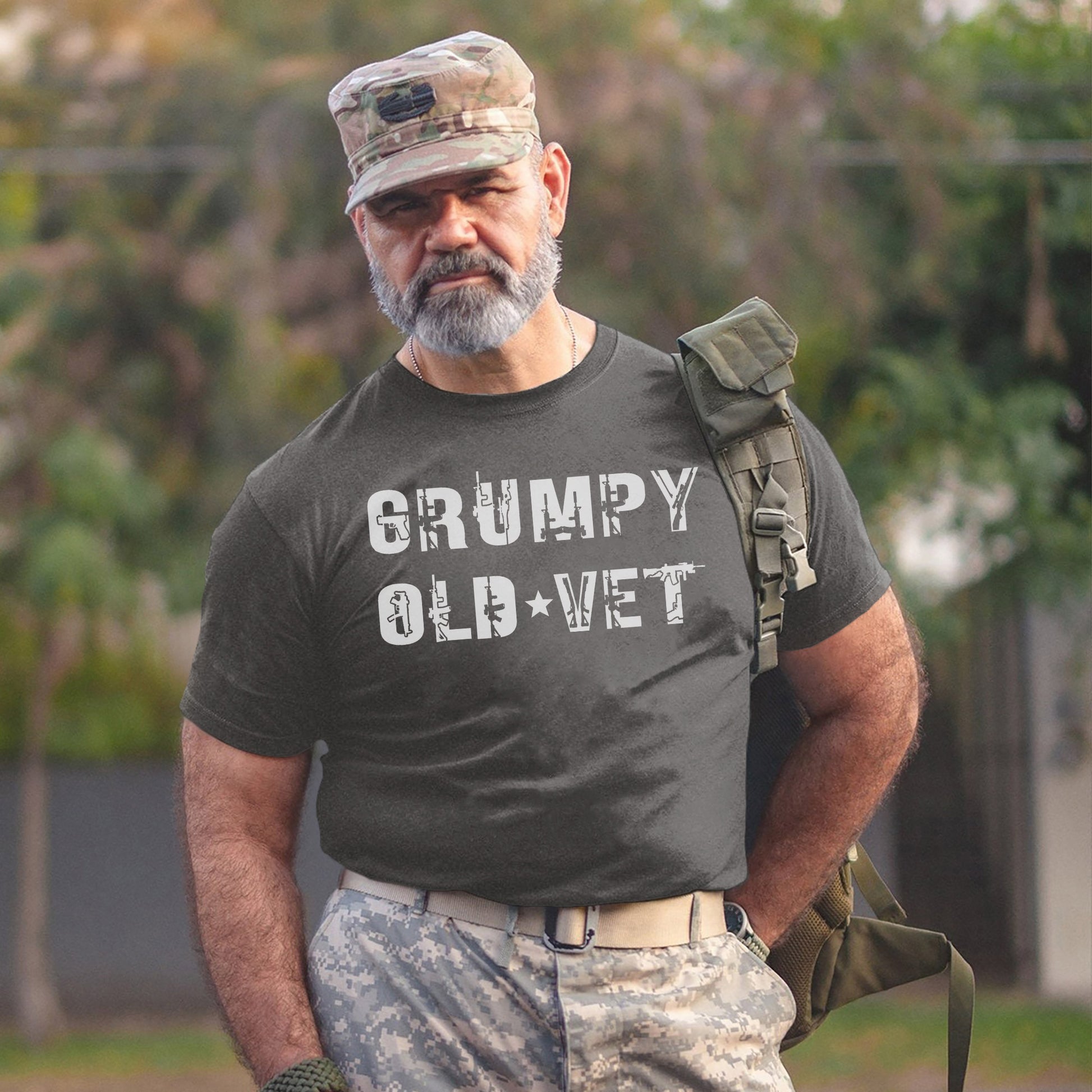 Grumpy Old Vet Military Font Design Bold Patriotic Letters for US Veterans T-Shirt