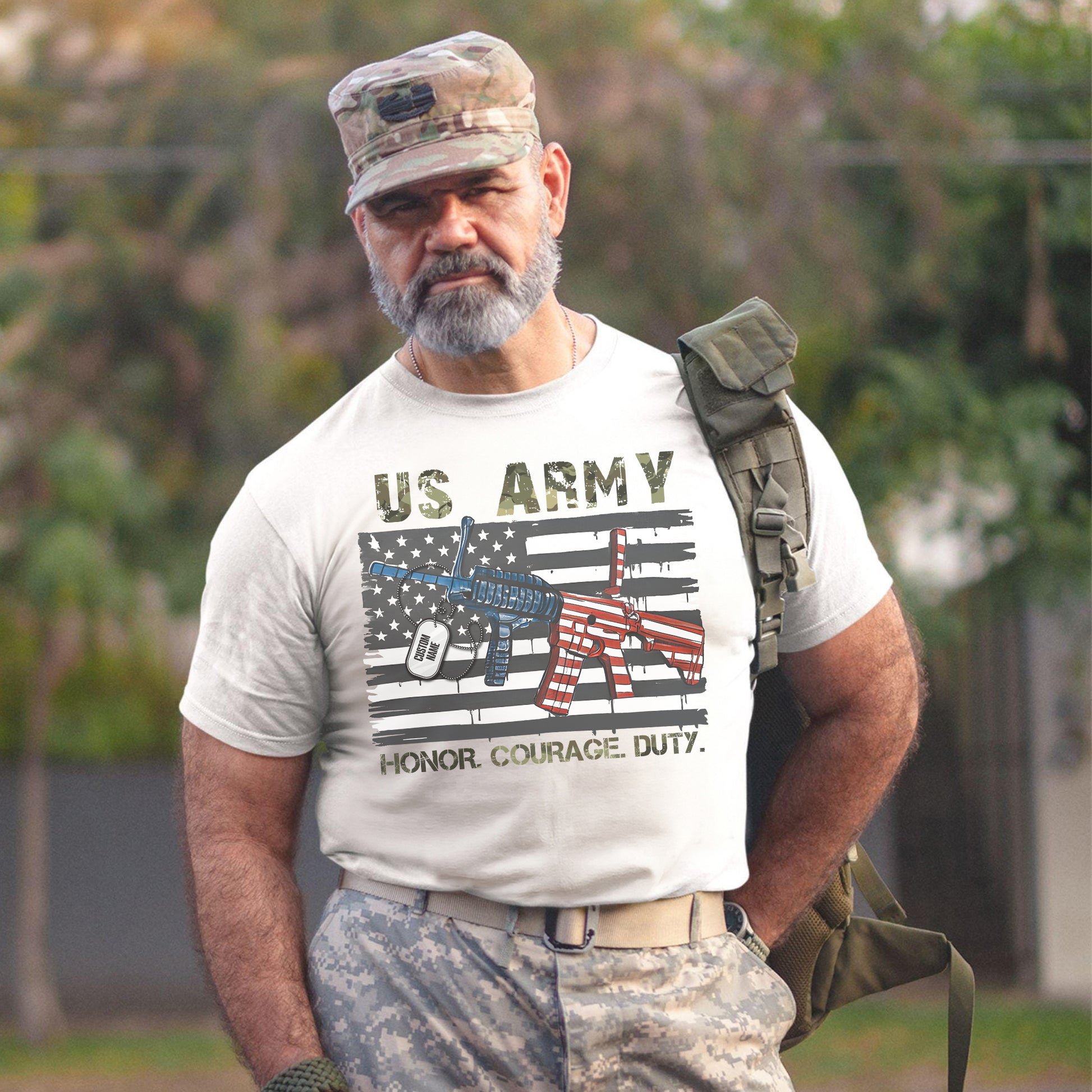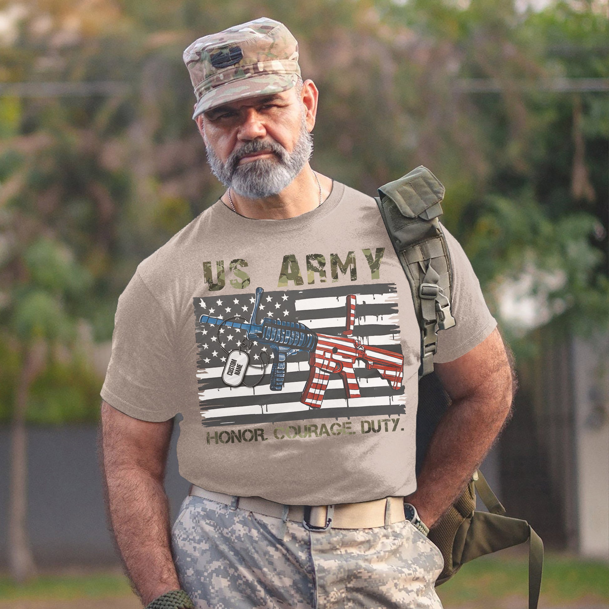 Honor Courage Duty Proud US Military Veteran Patriotic Service Personalized T-Shirt