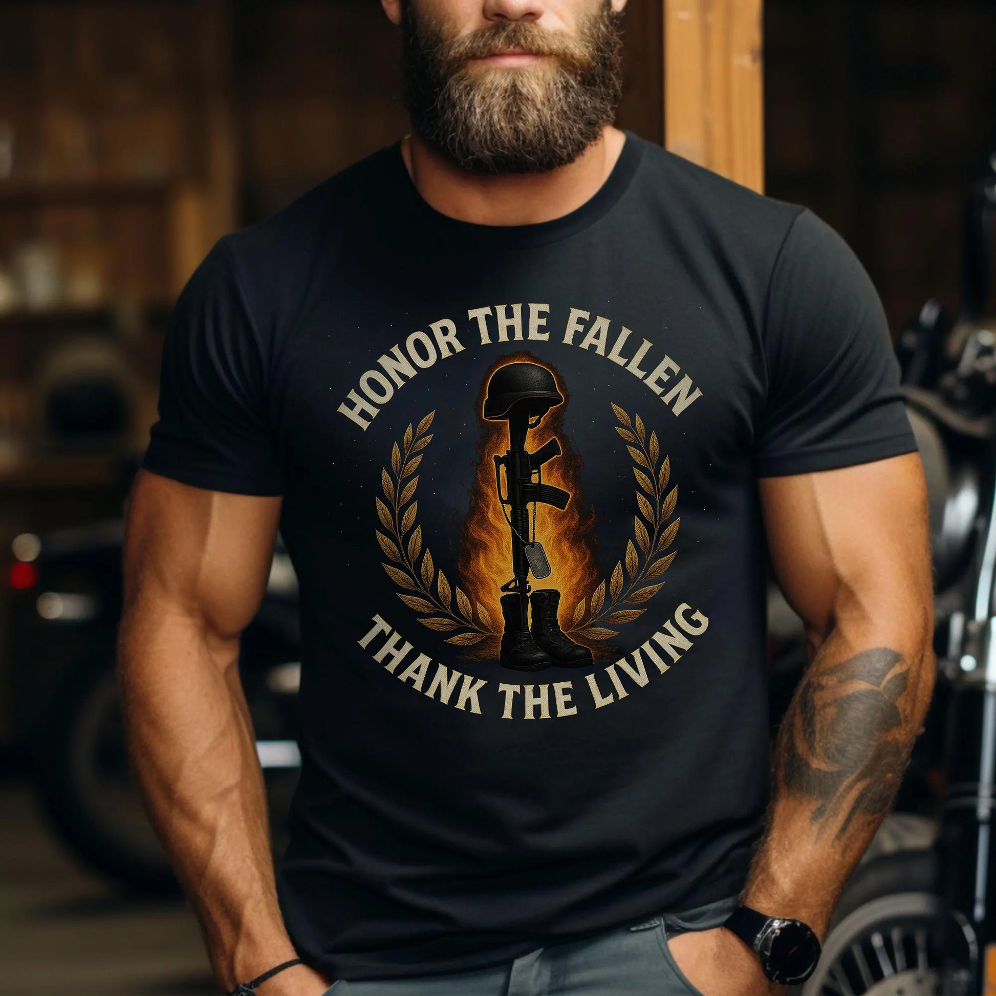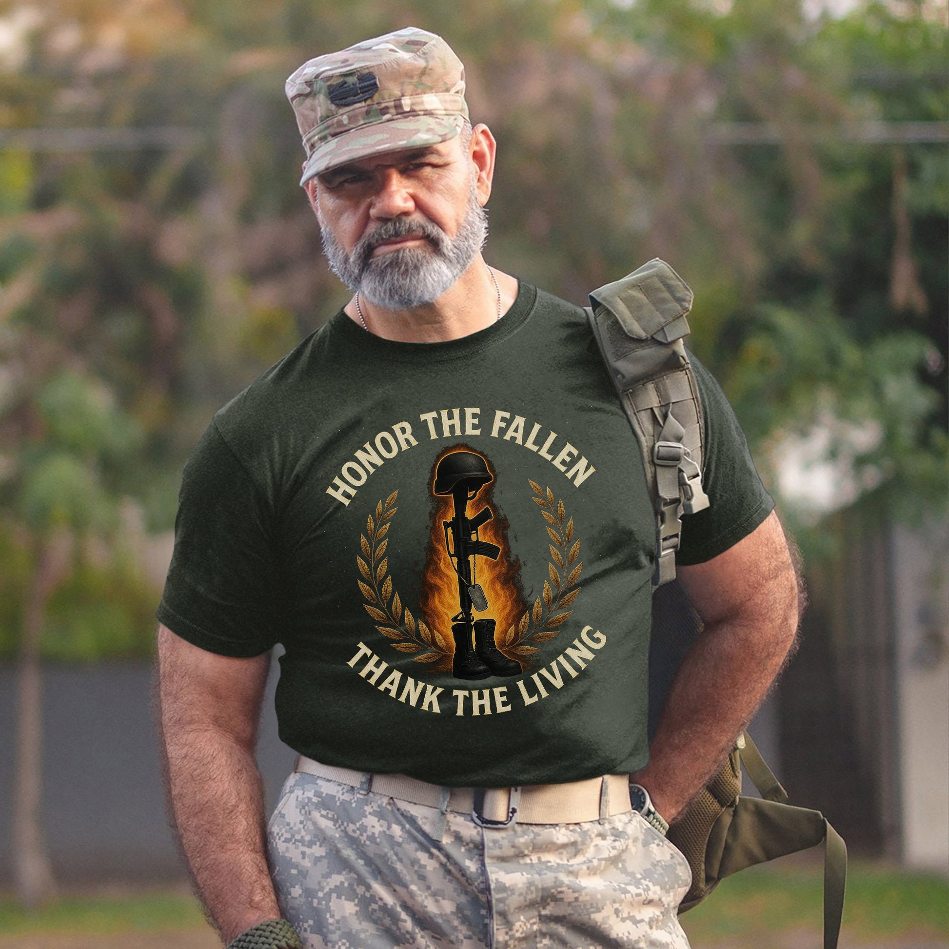 Honor the Fallen Thank the Living US Military Veteran Patriotic Tribute T-Shirt