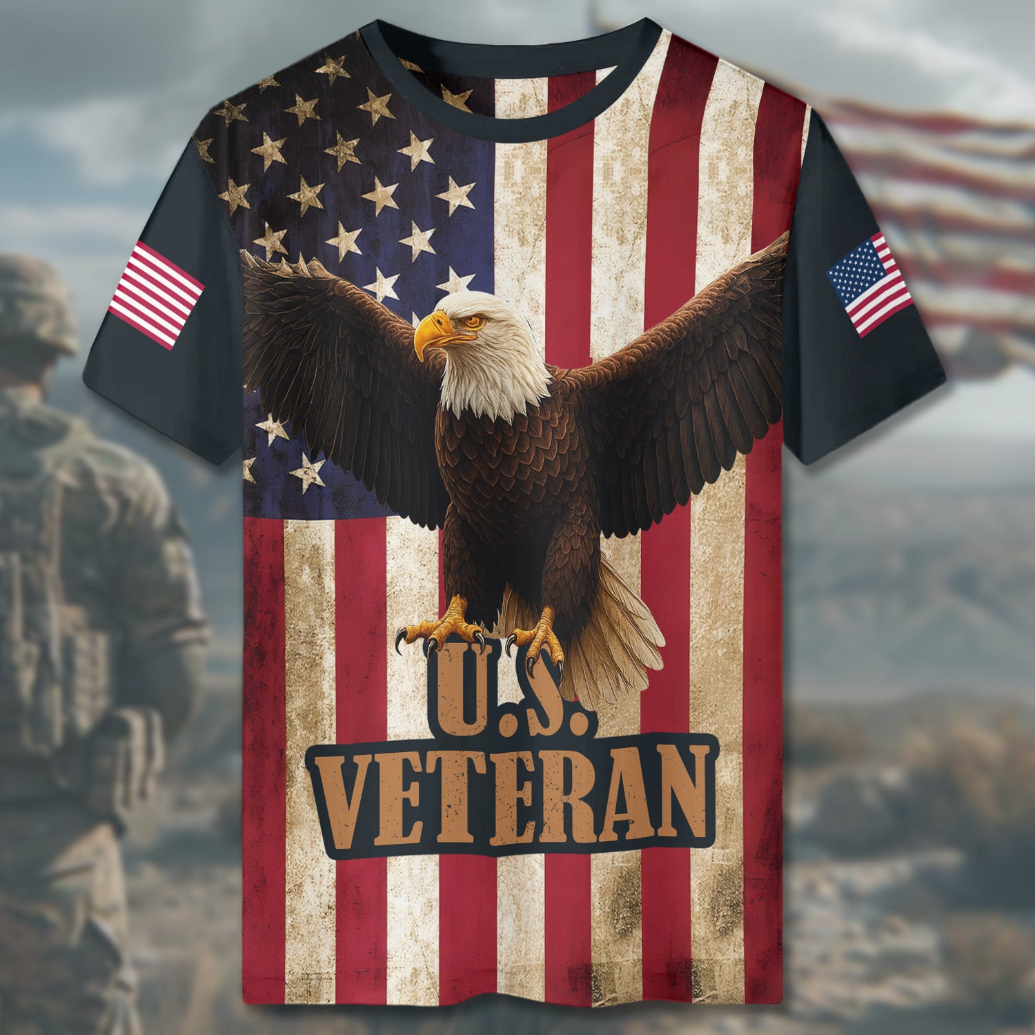 Honor service and celebrate pride in this bold all-over print t-shirt made for everyday wear. Designed for veterans, supporters, and anyone who wears their values with pride.