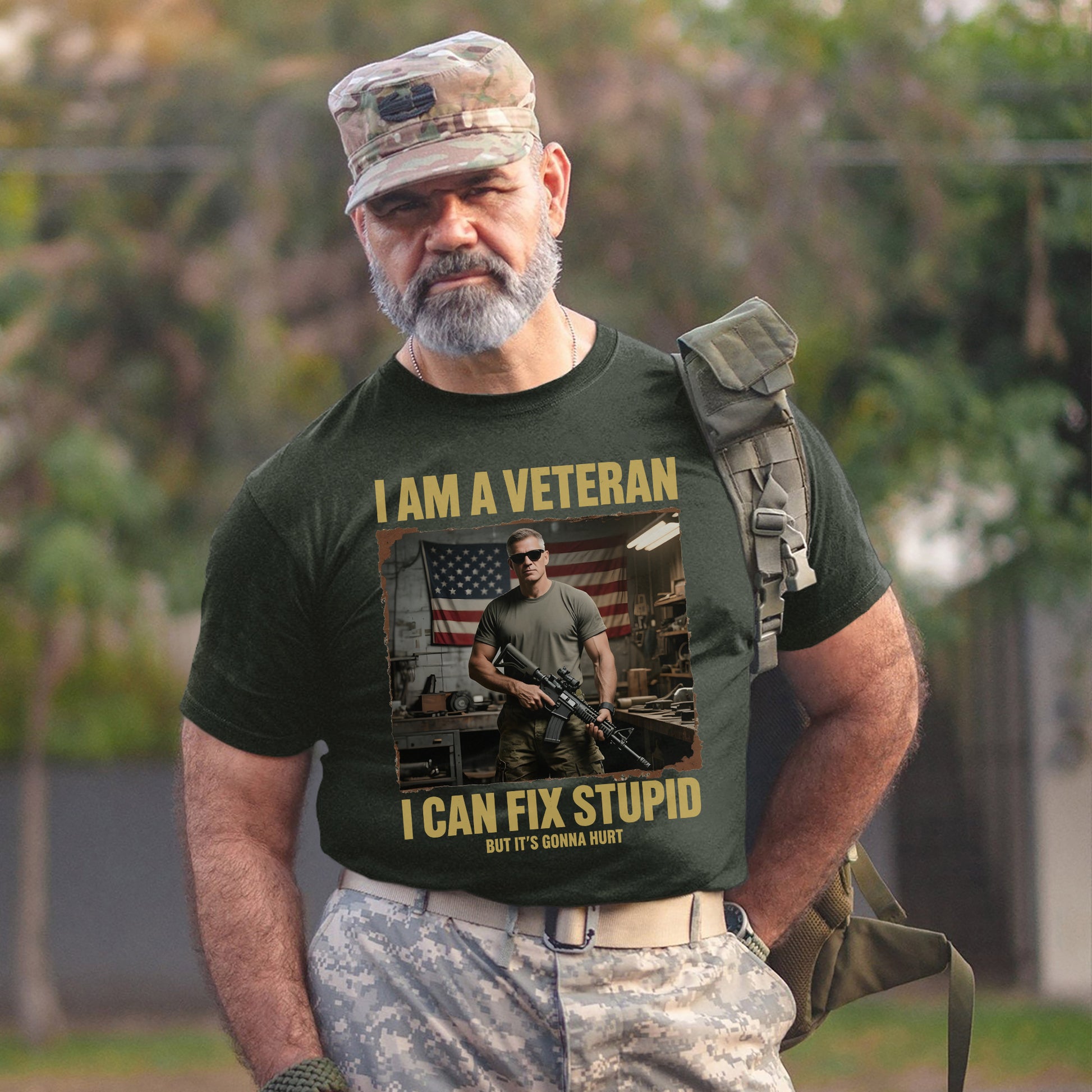 I Am a Veteran I Can Fix Stupid But It’s Gonna Hurt Proud US Military Patriotic Pride T-Shirt