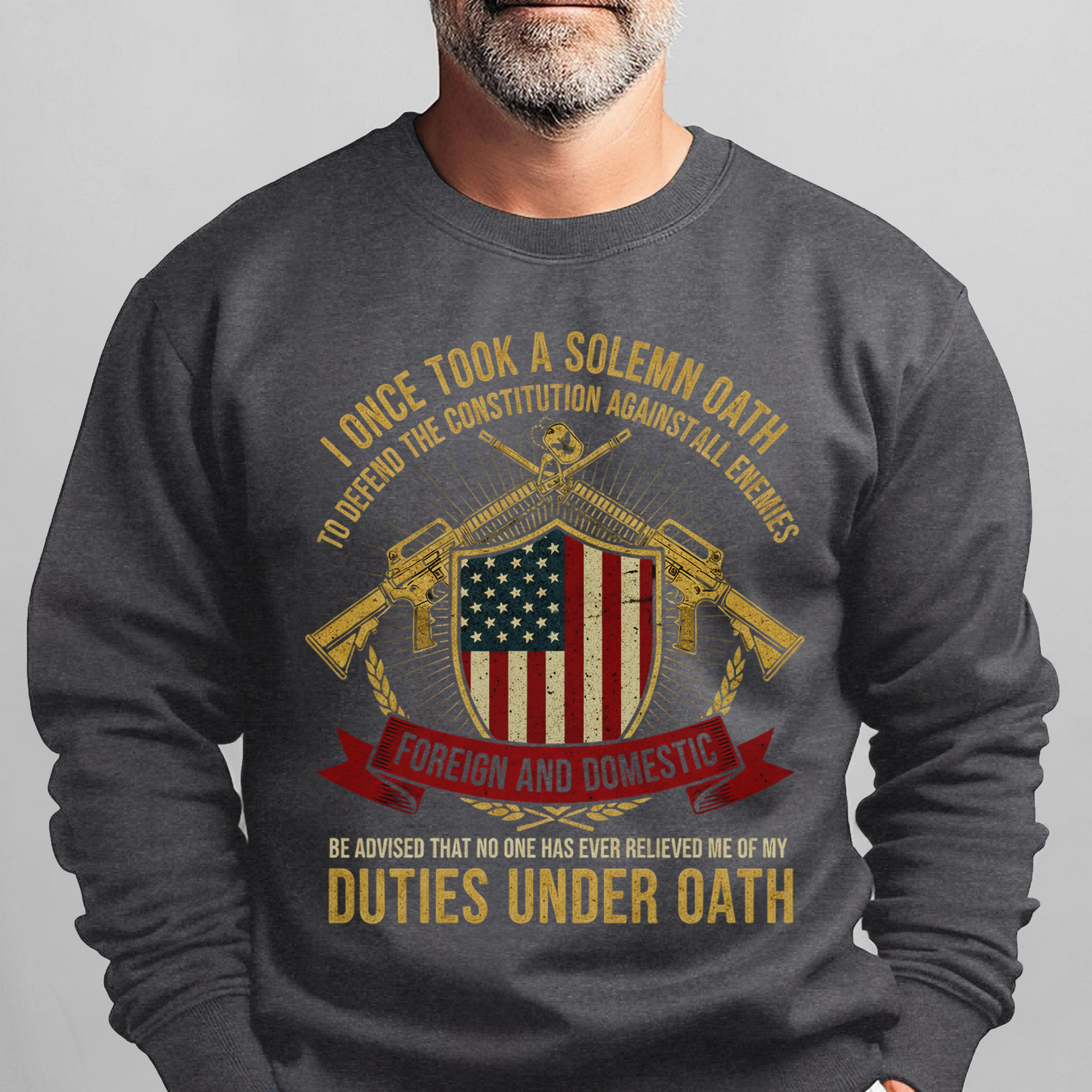 Honor the oath and the commitment to protect our nation with this powerful sweatshirt.
