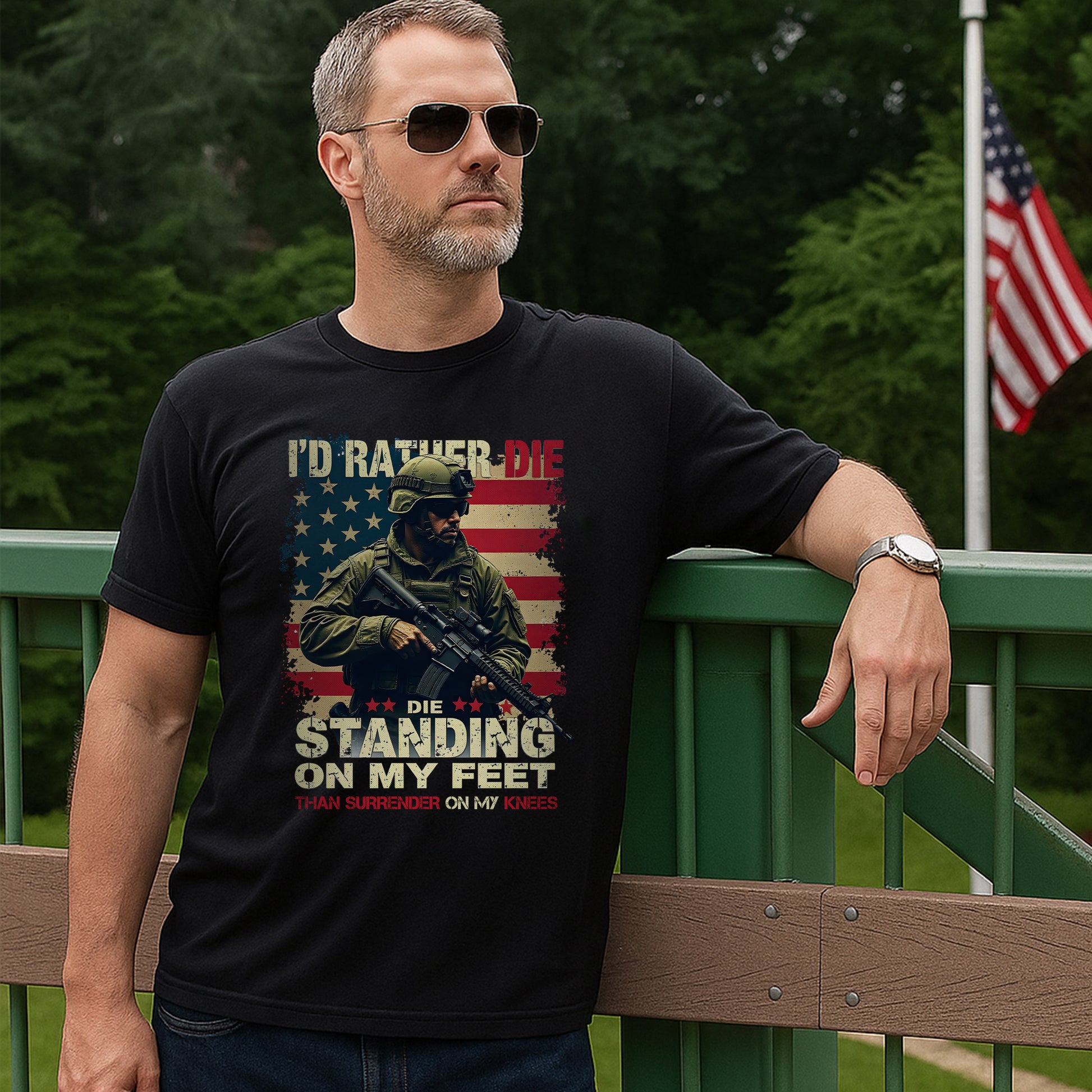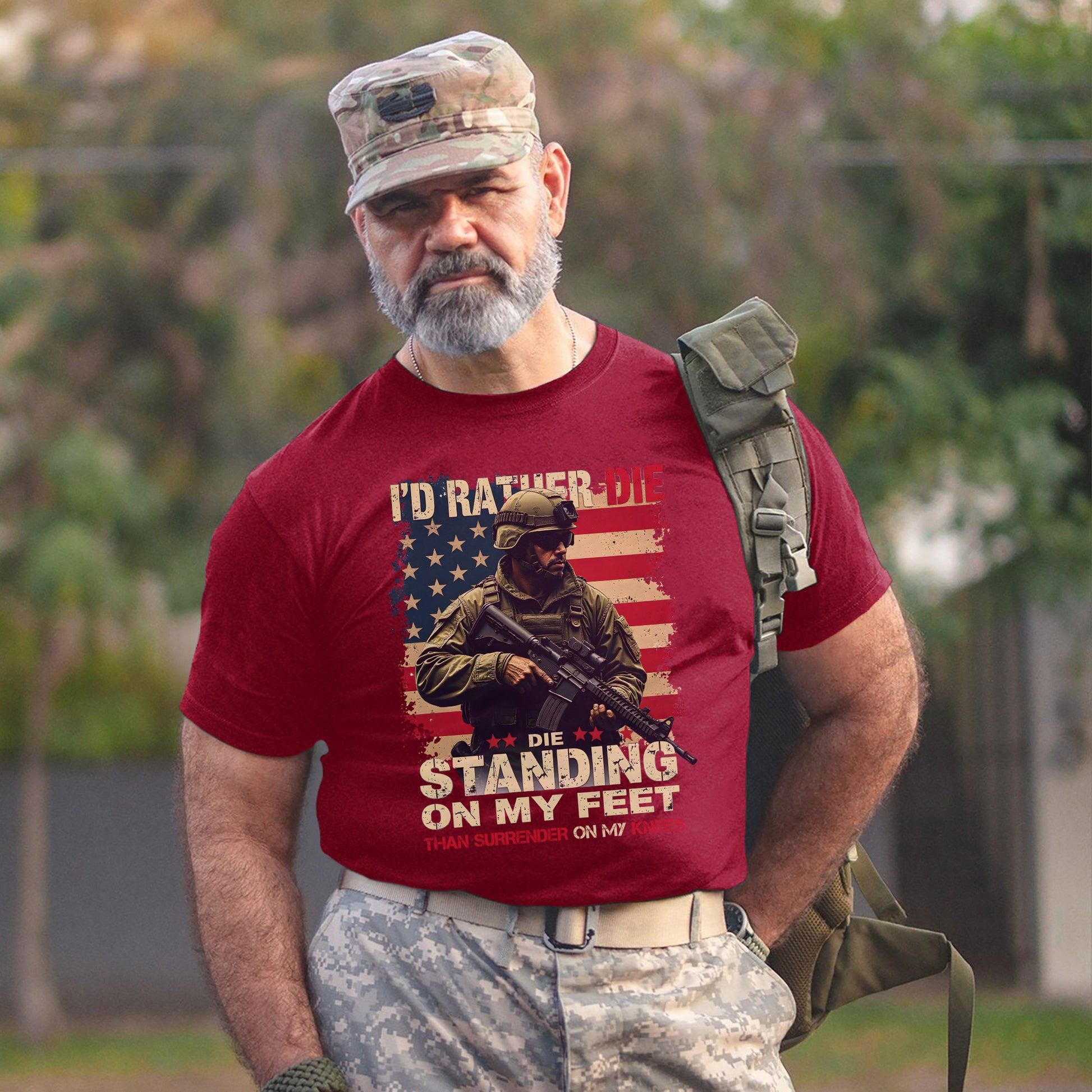 I'd Rather Die Standing Than Kneel Bold Patriotic Quote for Fearless and Proud US Veterans T-Shirt