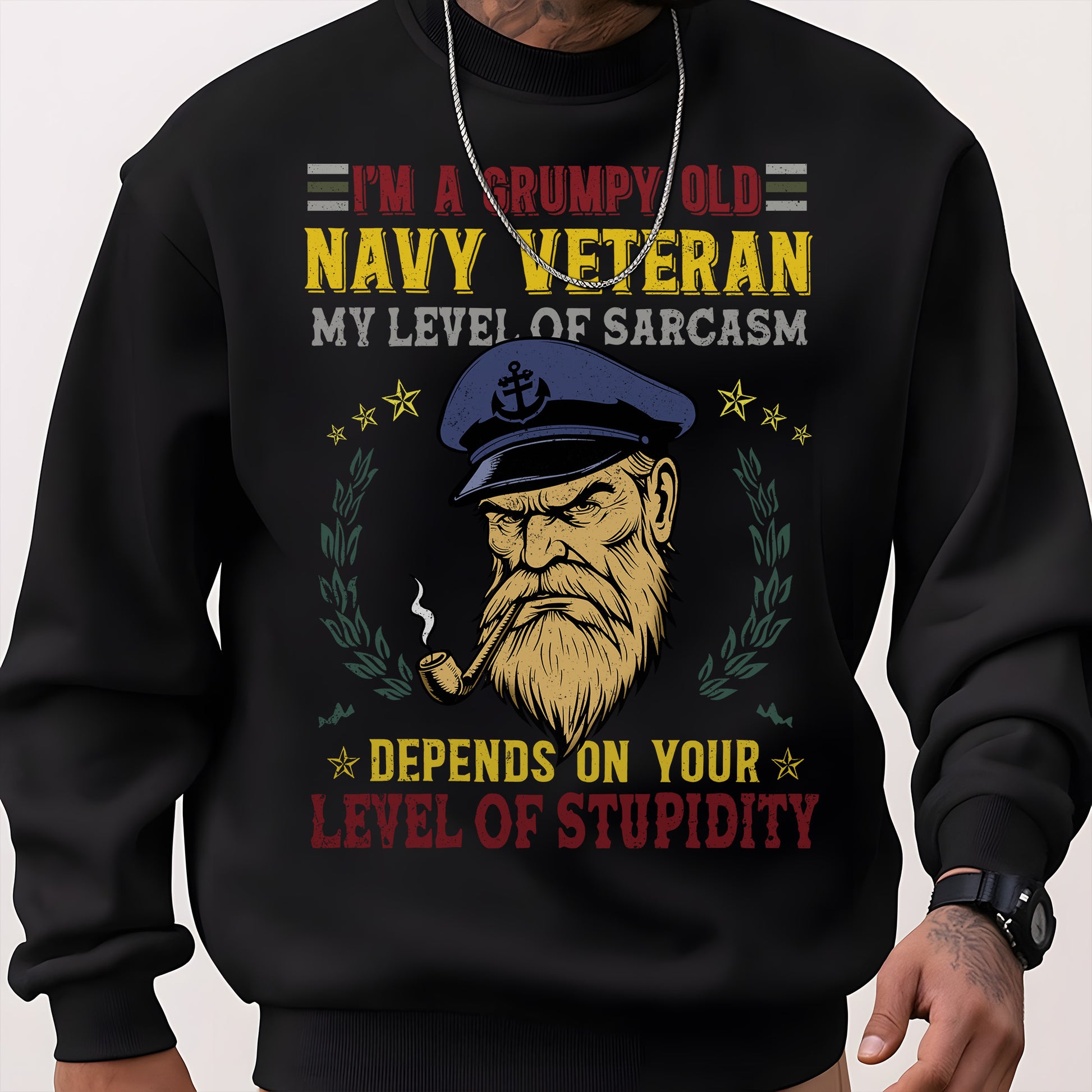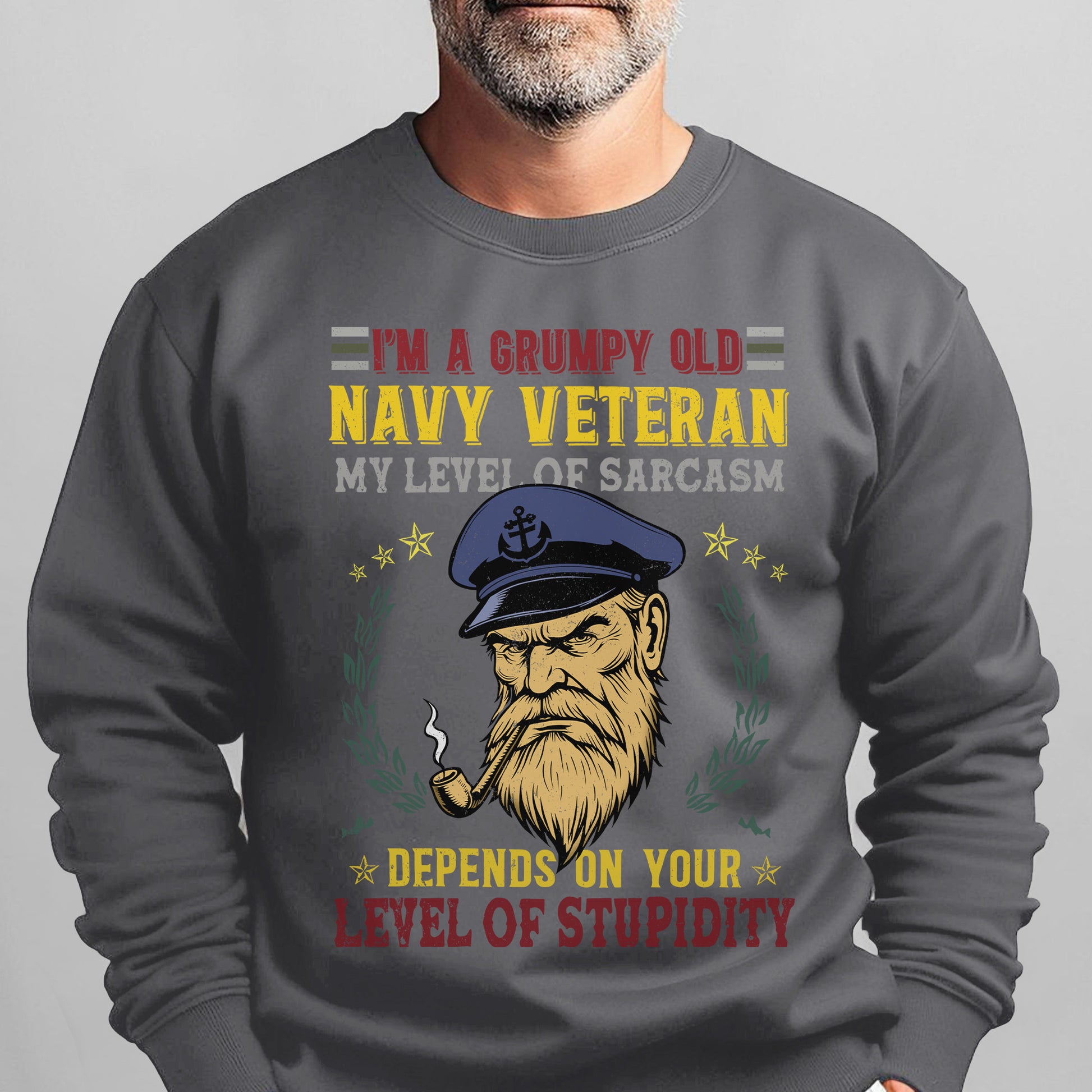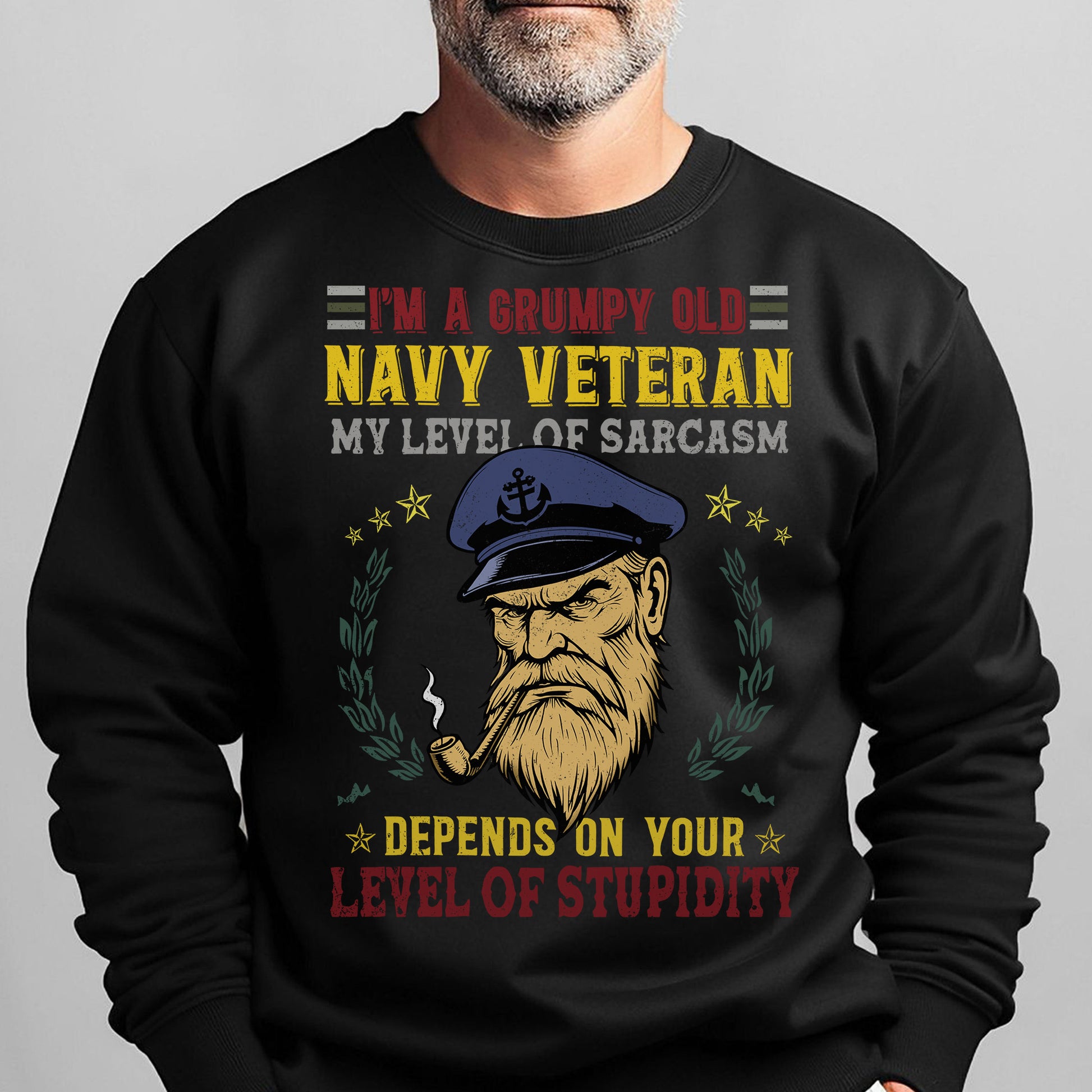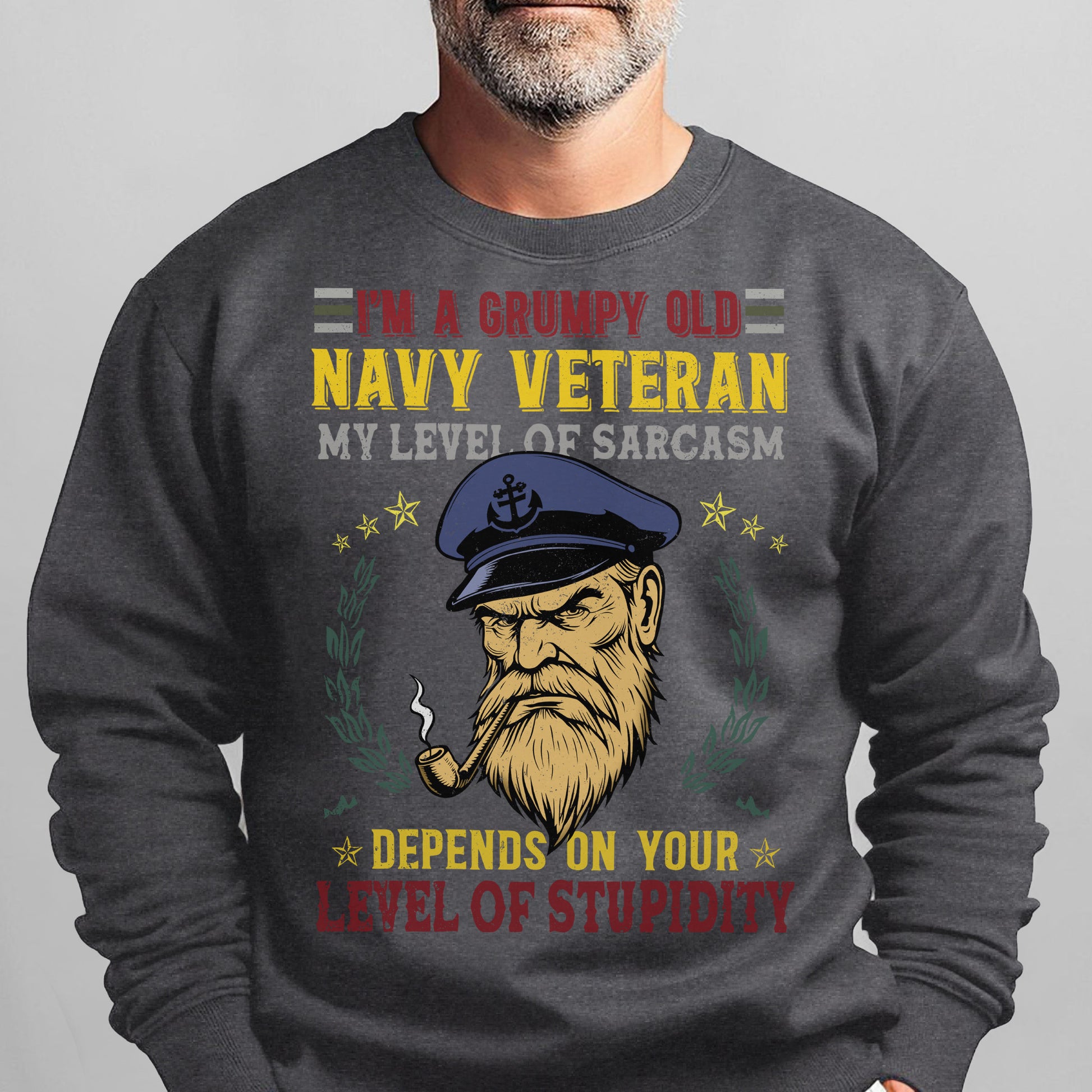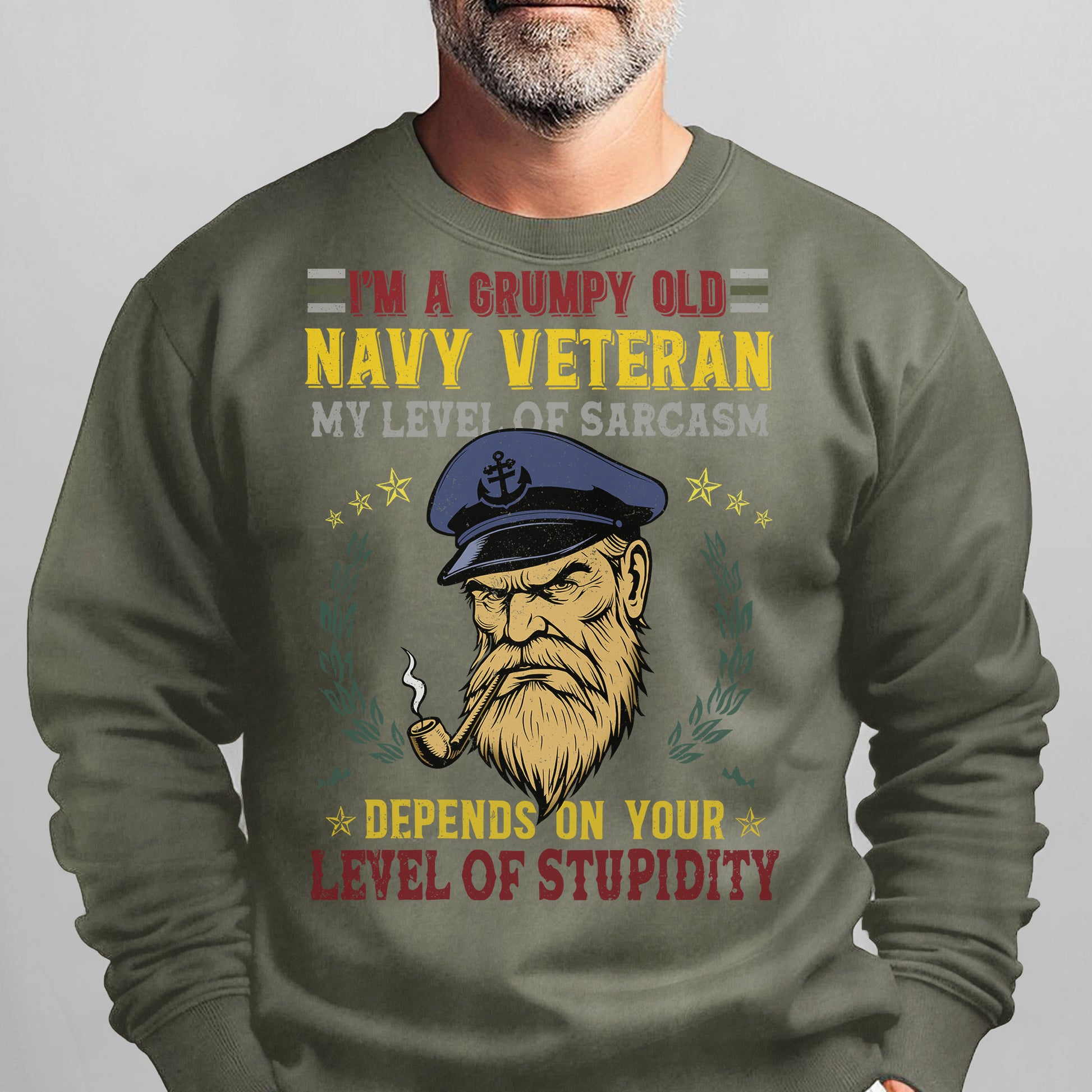 I'm a Grumpy Old Navy Veteran My Level of Sarcasm Depends on Your Level of Stupidity US Navy Sweatshirt