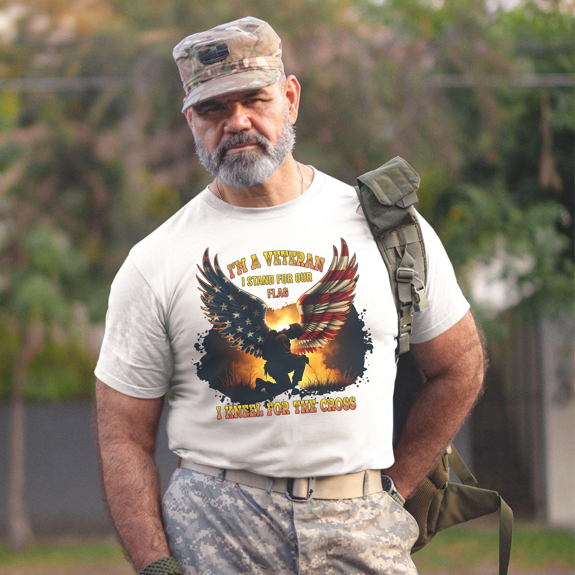 I'm a Veteran I Stand for Our Flag I Kneel for the Cross Honoring Faith and Patriotism T-Shirt