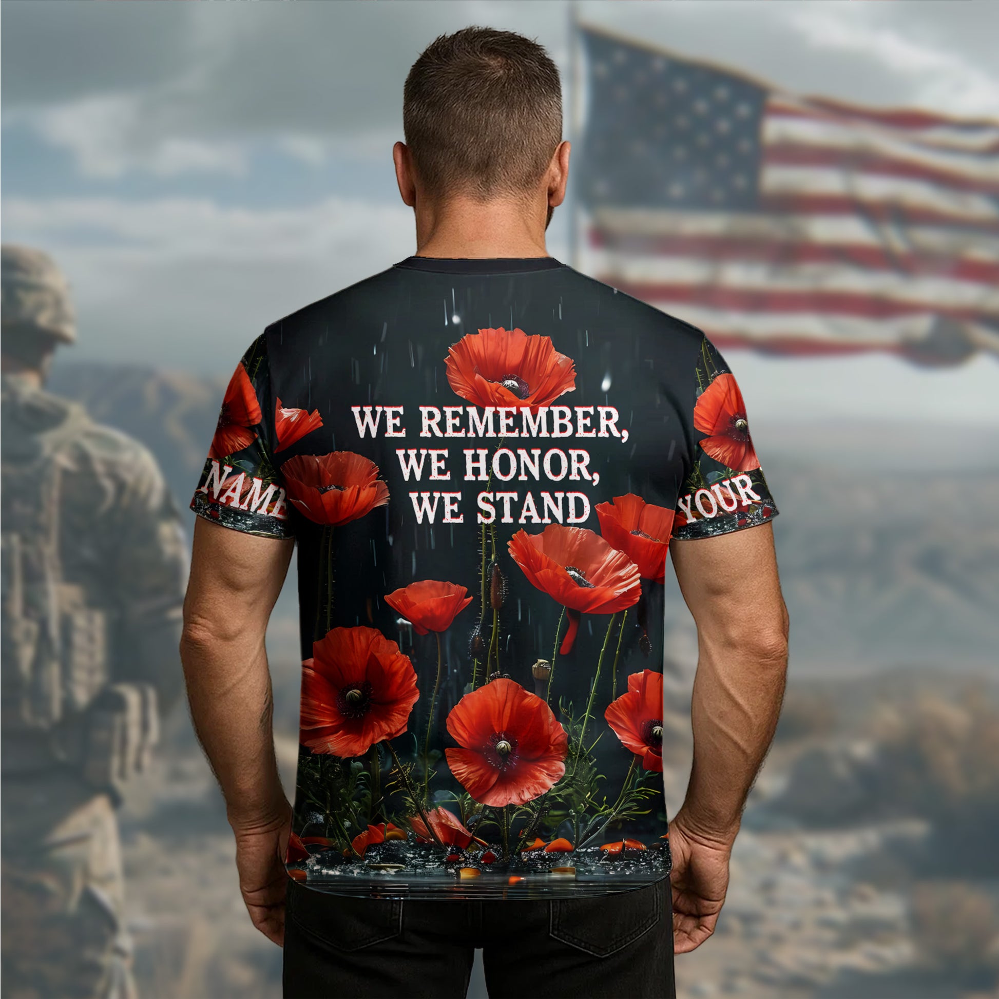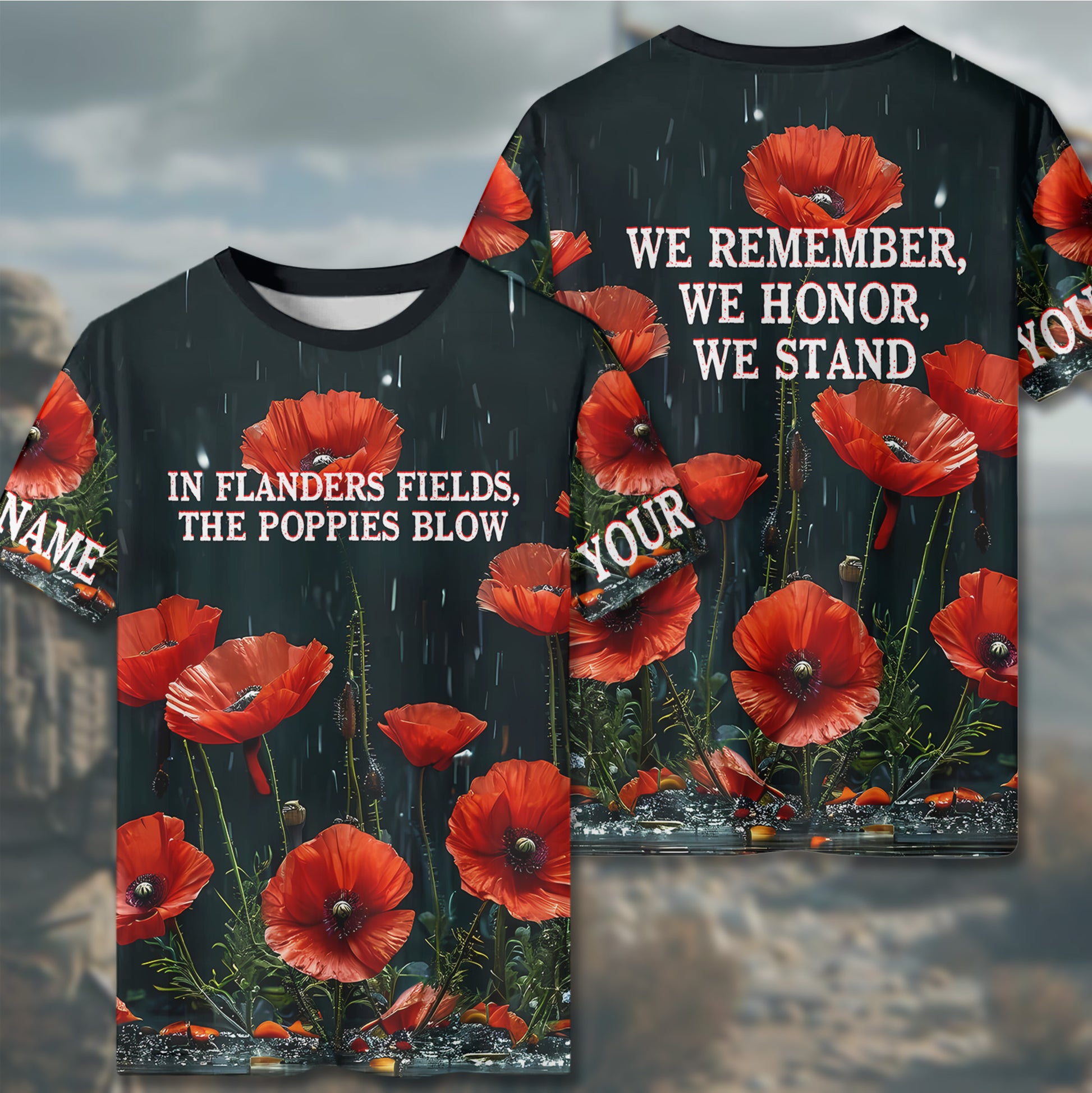 In Flanders Fields Poppies Blow We Remember Honor Stand Veteran Tribute All-over Print Personalized T-Shirt