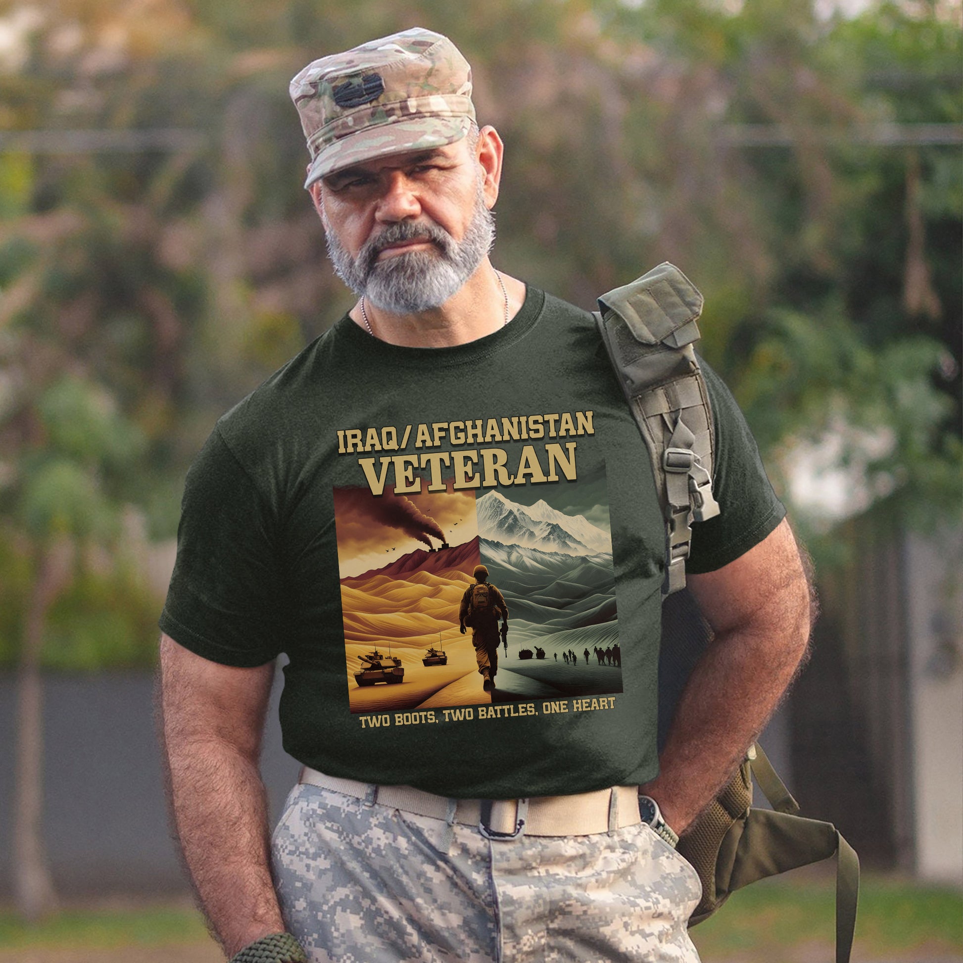 Iraq Afghanistan Veteran Two Boots Two Battles One Heart Proud US Military Service T-Shirt