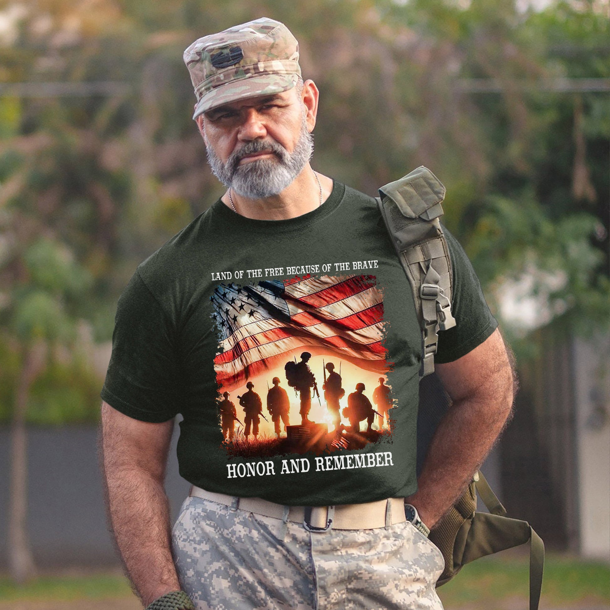 Land of the Free Because of the Brave Honor and Remember Shirt Patriotic Veteran T Shirt Honoring Military Service and Sacrifice T-Shirt