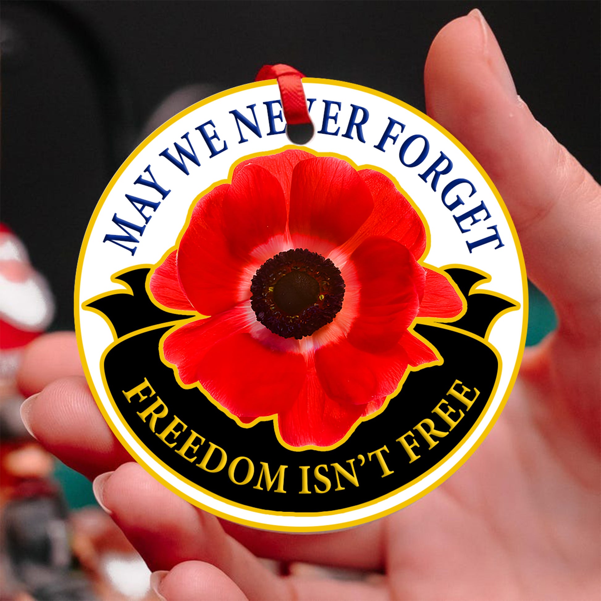 Red Poppy Memorial Ornament - Freedom Isn't Free