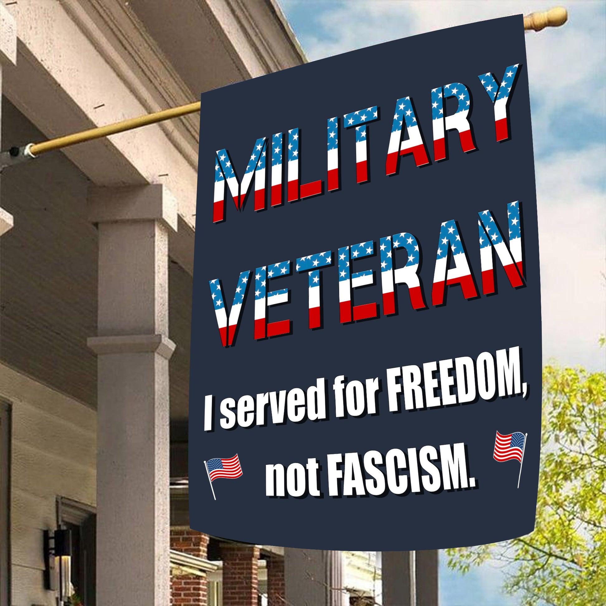 Honor your service and sacrifice with this striking flag that proudly declares your commitment to freedom. A symbol of courage and resilience, it stands as a testament to the values we cherish.