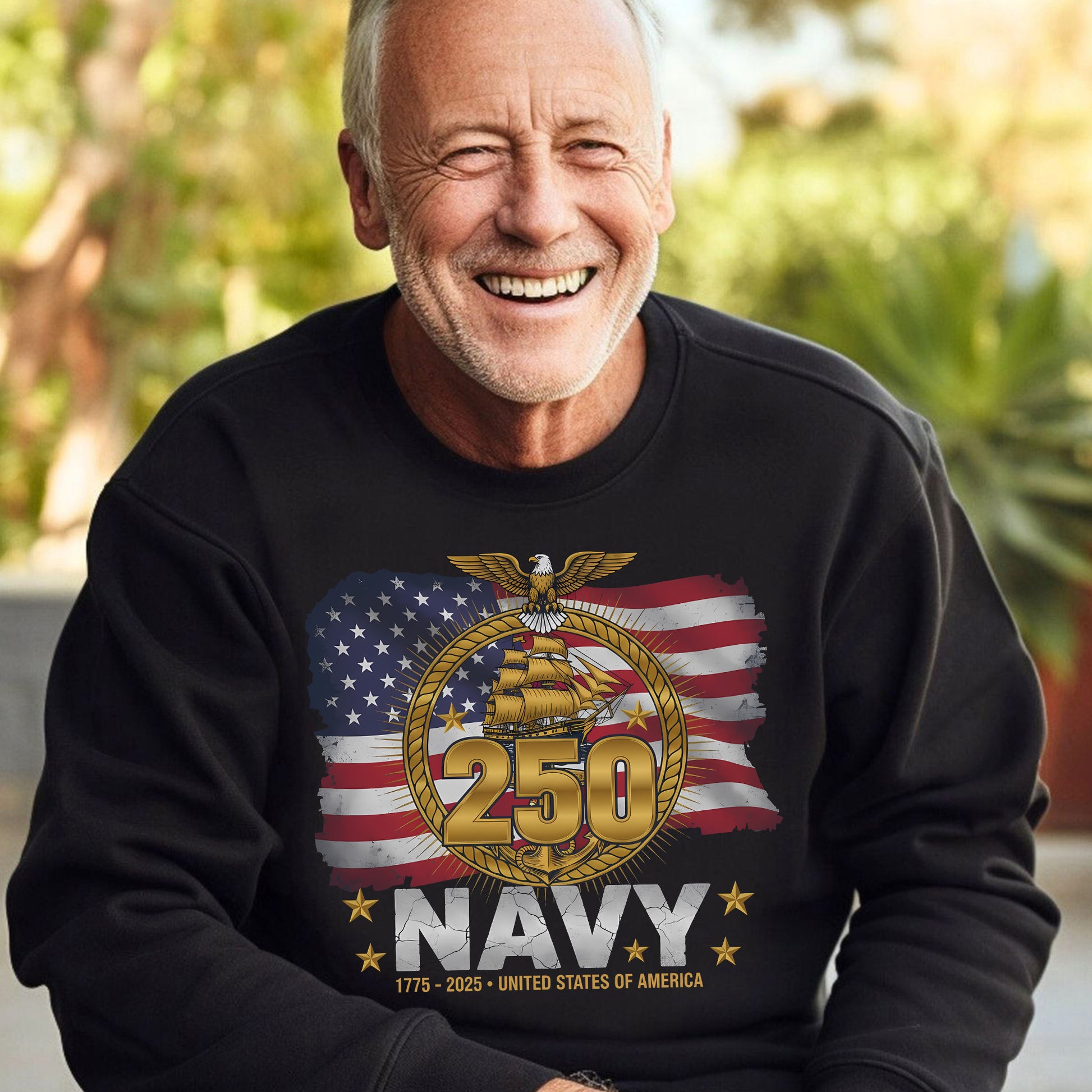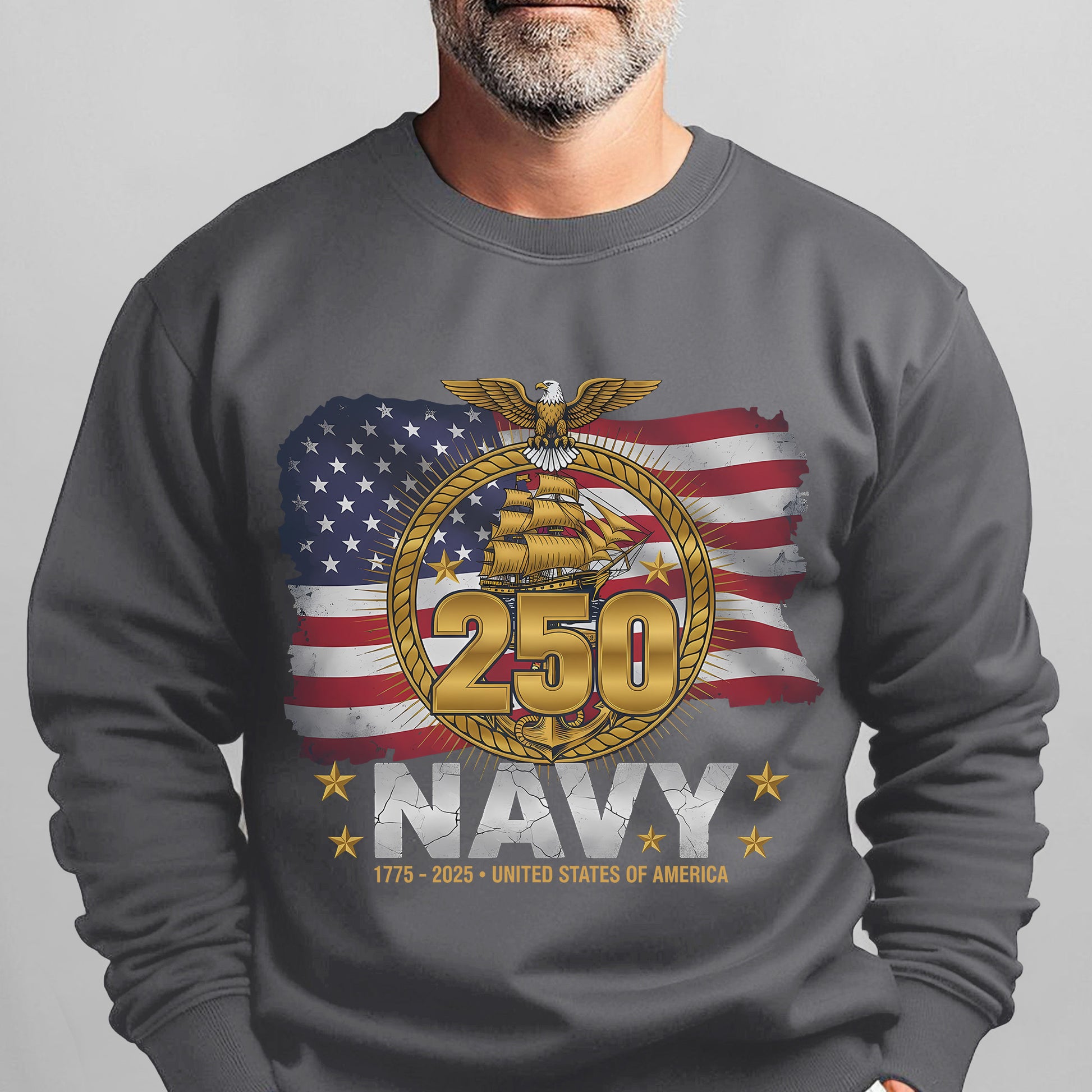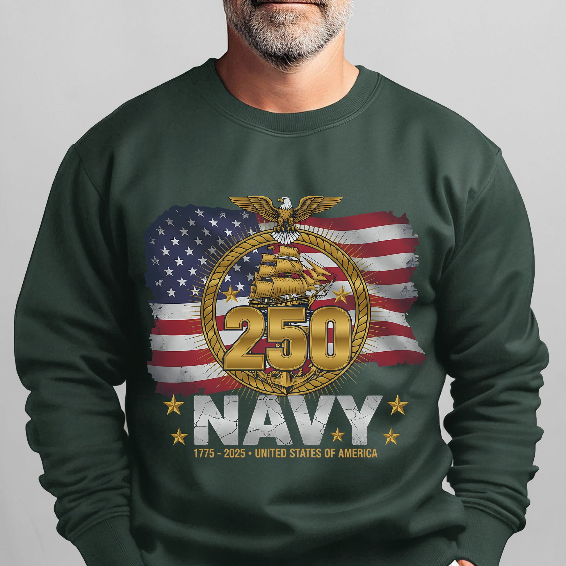 Navy 250 1775–2025 United States of America Proud US Military Veteran Honor Courage Service Sweatshirt