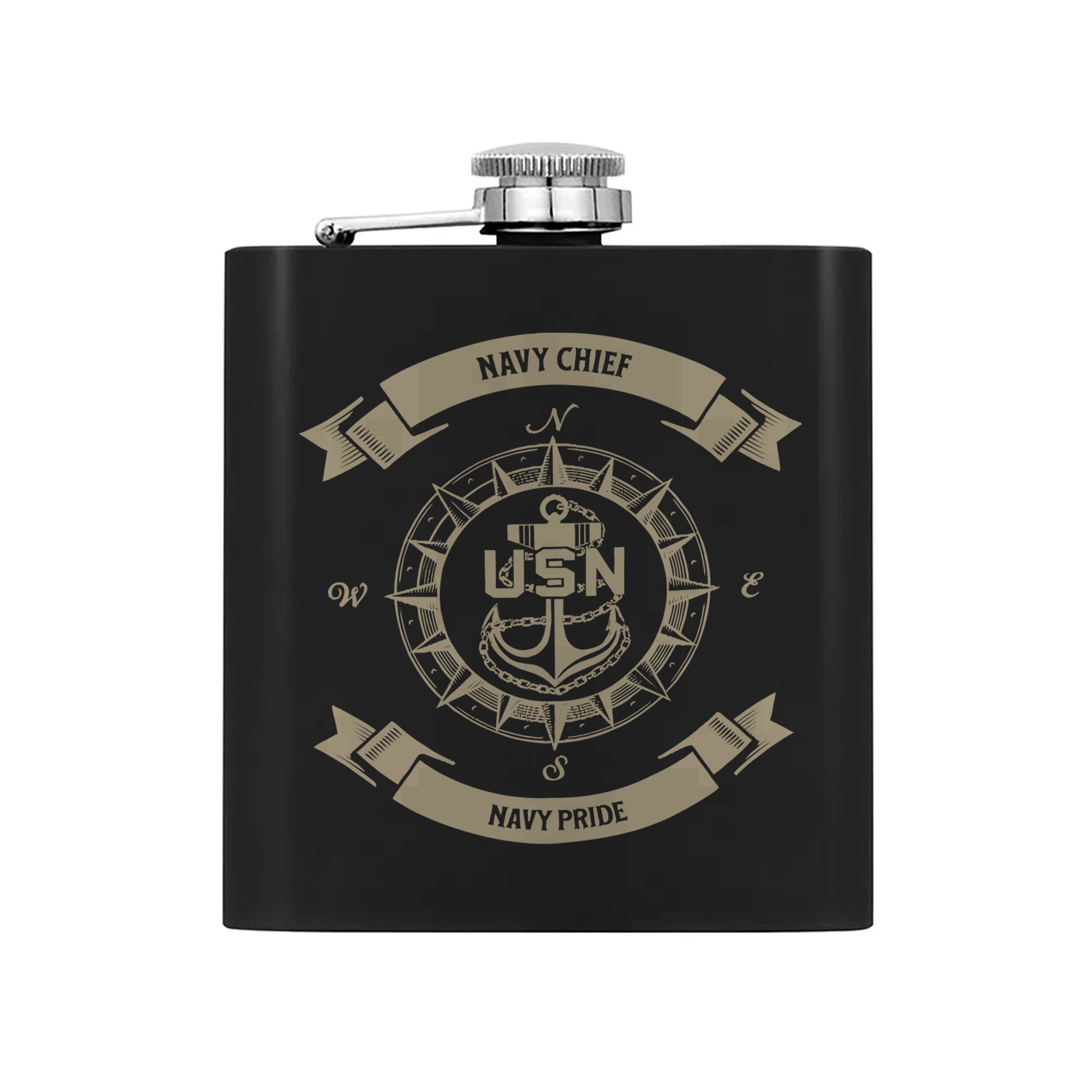Celebrate the spirit of service with our Navy Chief Flask, a tribute to the dedication and bravery of those who serve.