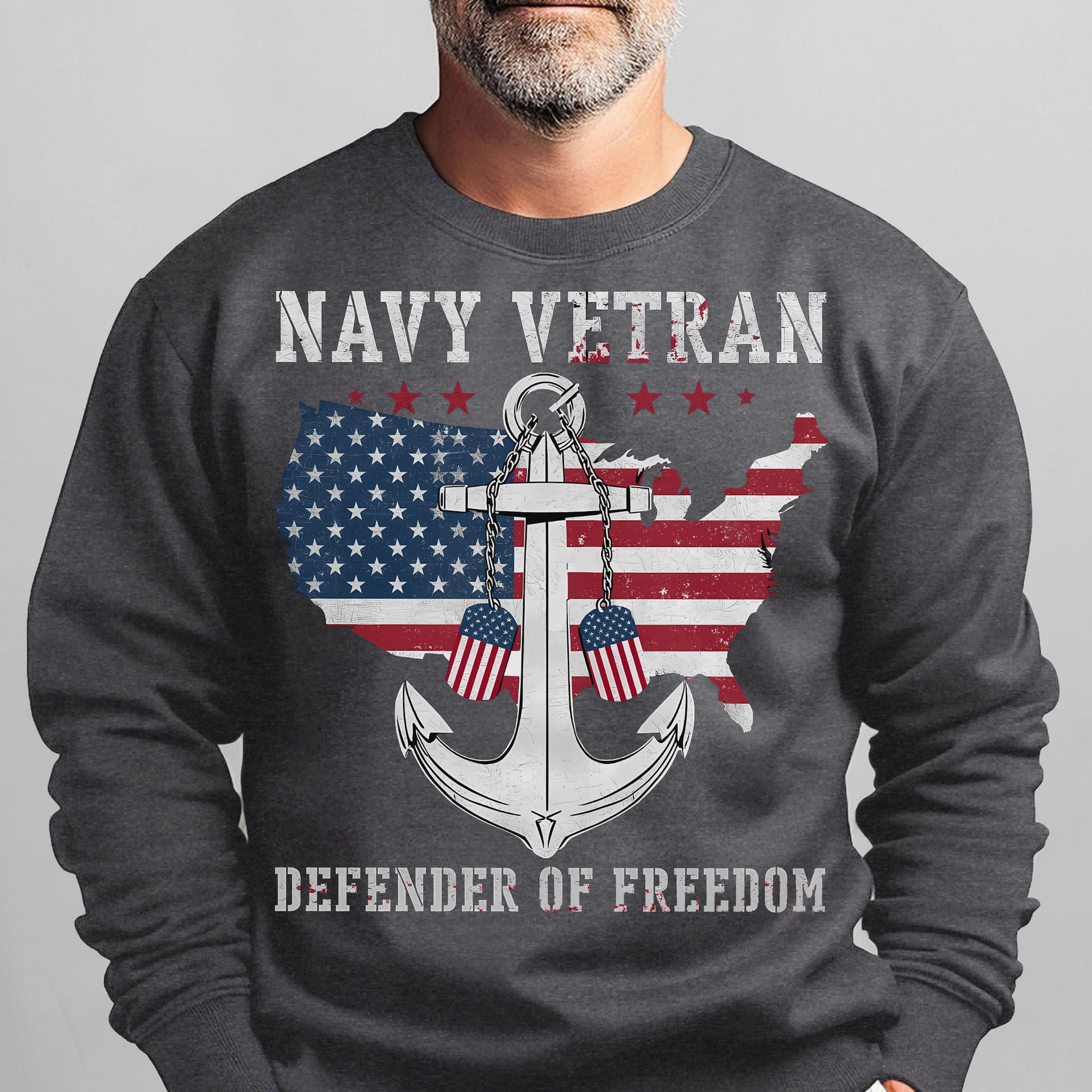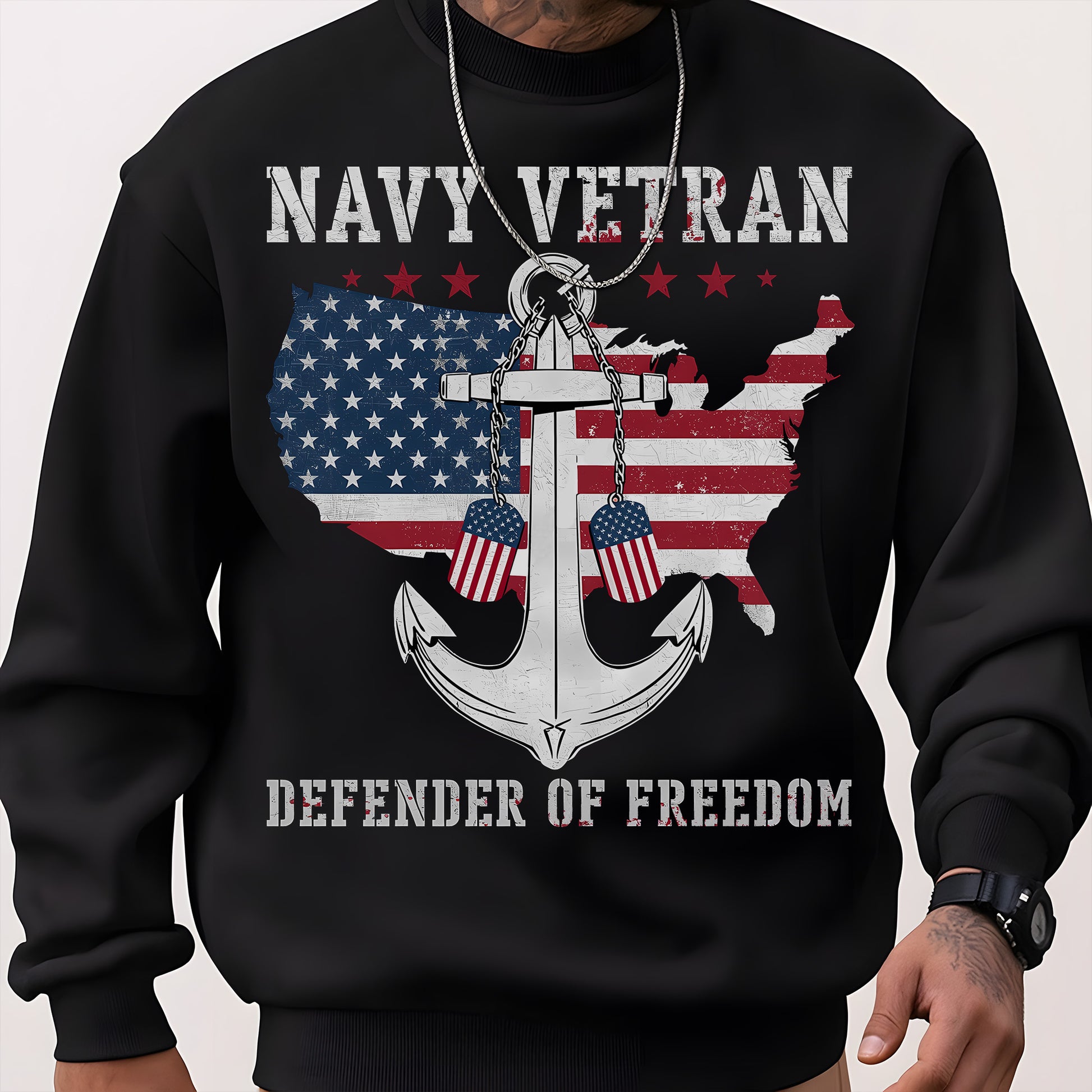 Navy Veteran Defender of Freedom US Navy American Flag Anchor Military Patriotic Sweatshirt