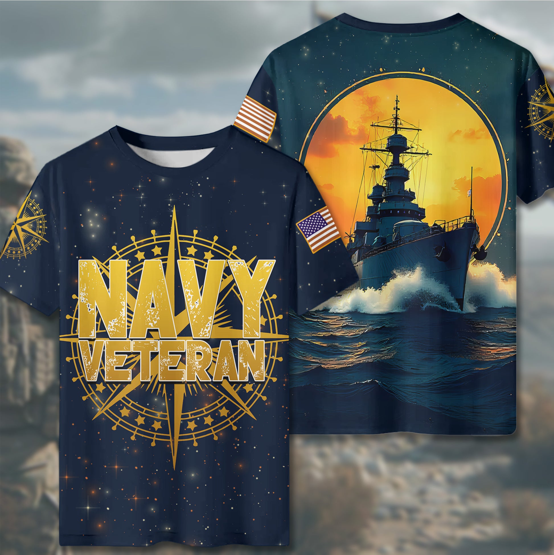 Navy Veteran Proud Defender of the Seas Honoring Service Courage and American Commitment All-over Print T-Shirt