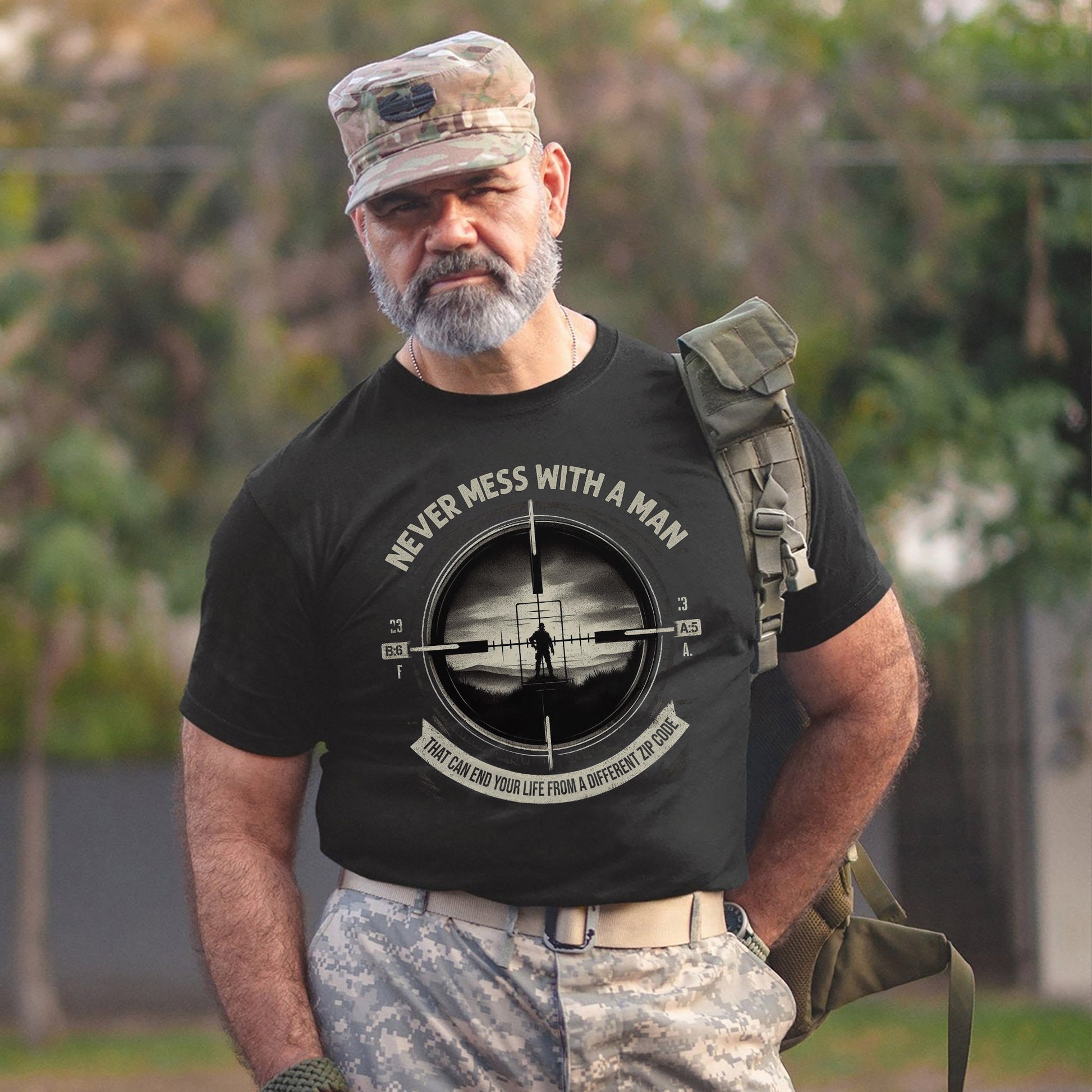 Never Mess With a Man Who Can End Your Life From a Different Zip Code US Military Veteran T-Shirt
