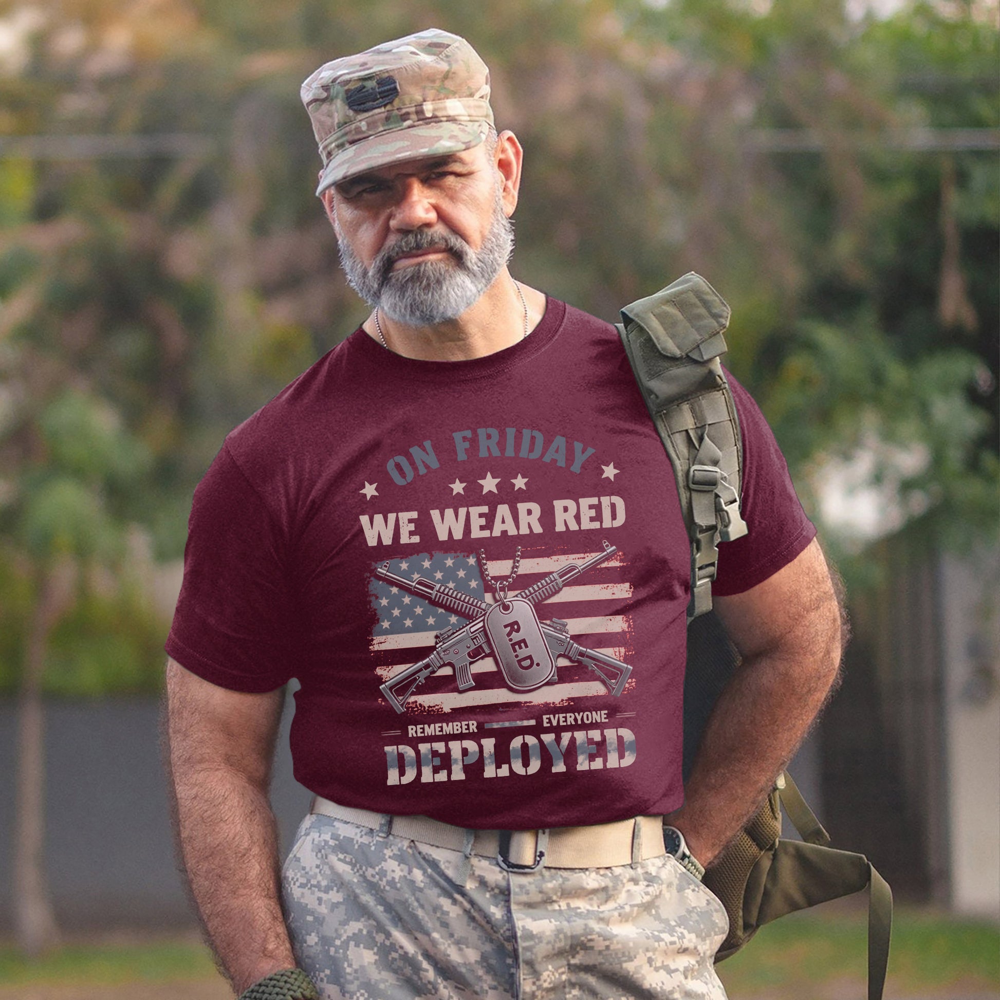 On Friday We Wear Red Remember Everyone Deployed Proud US Military Veteran T-Shirt