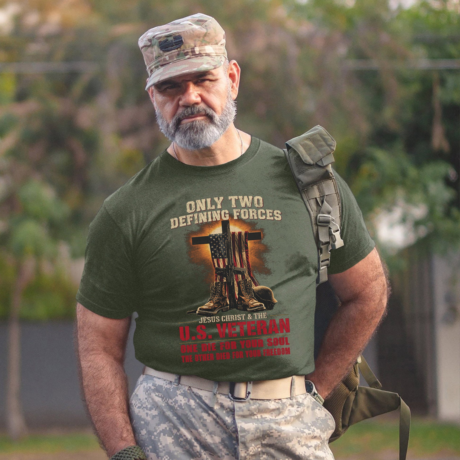 Only Two Defining Forces Jesus Christ and the US Veteran Patriotic Tribute T-Shirt