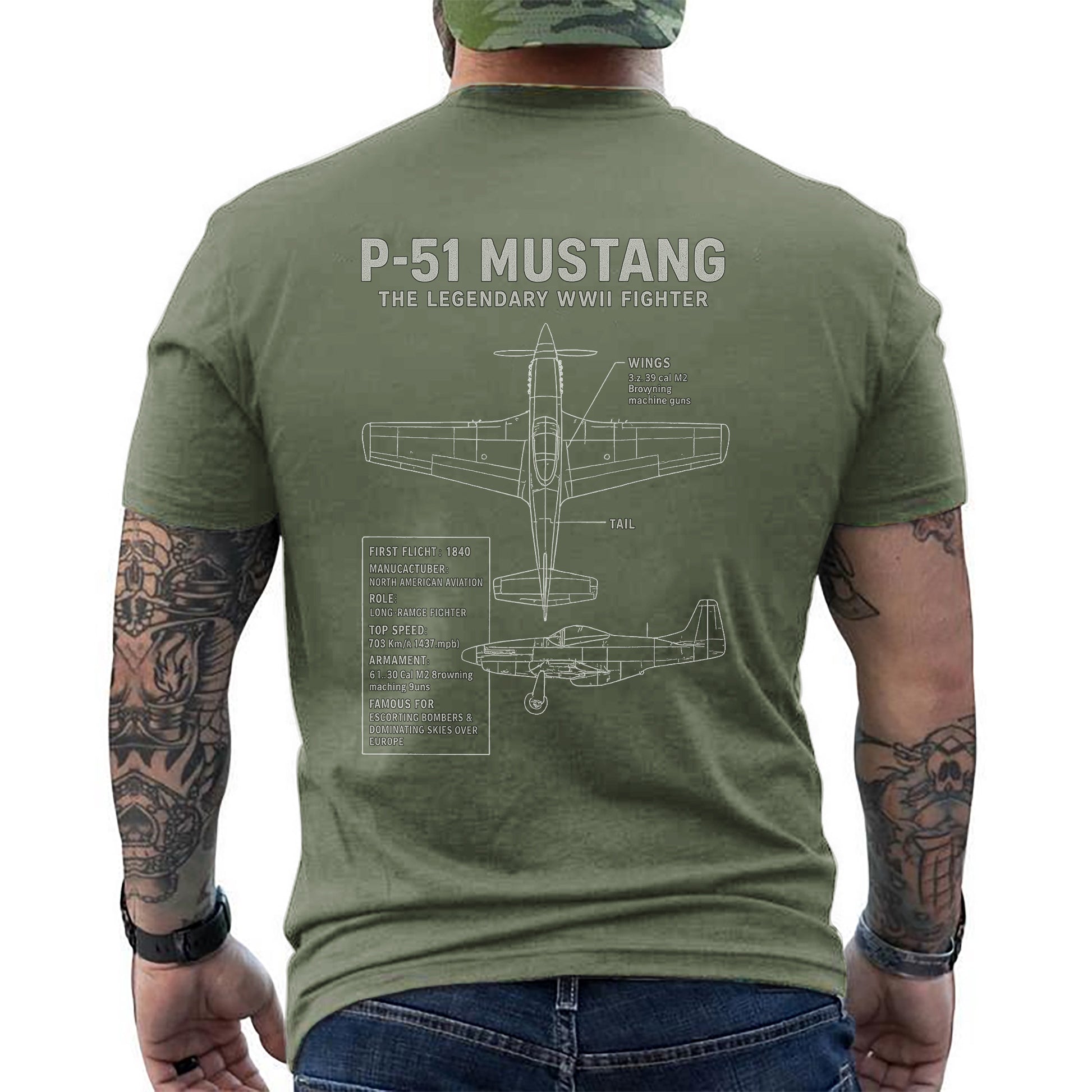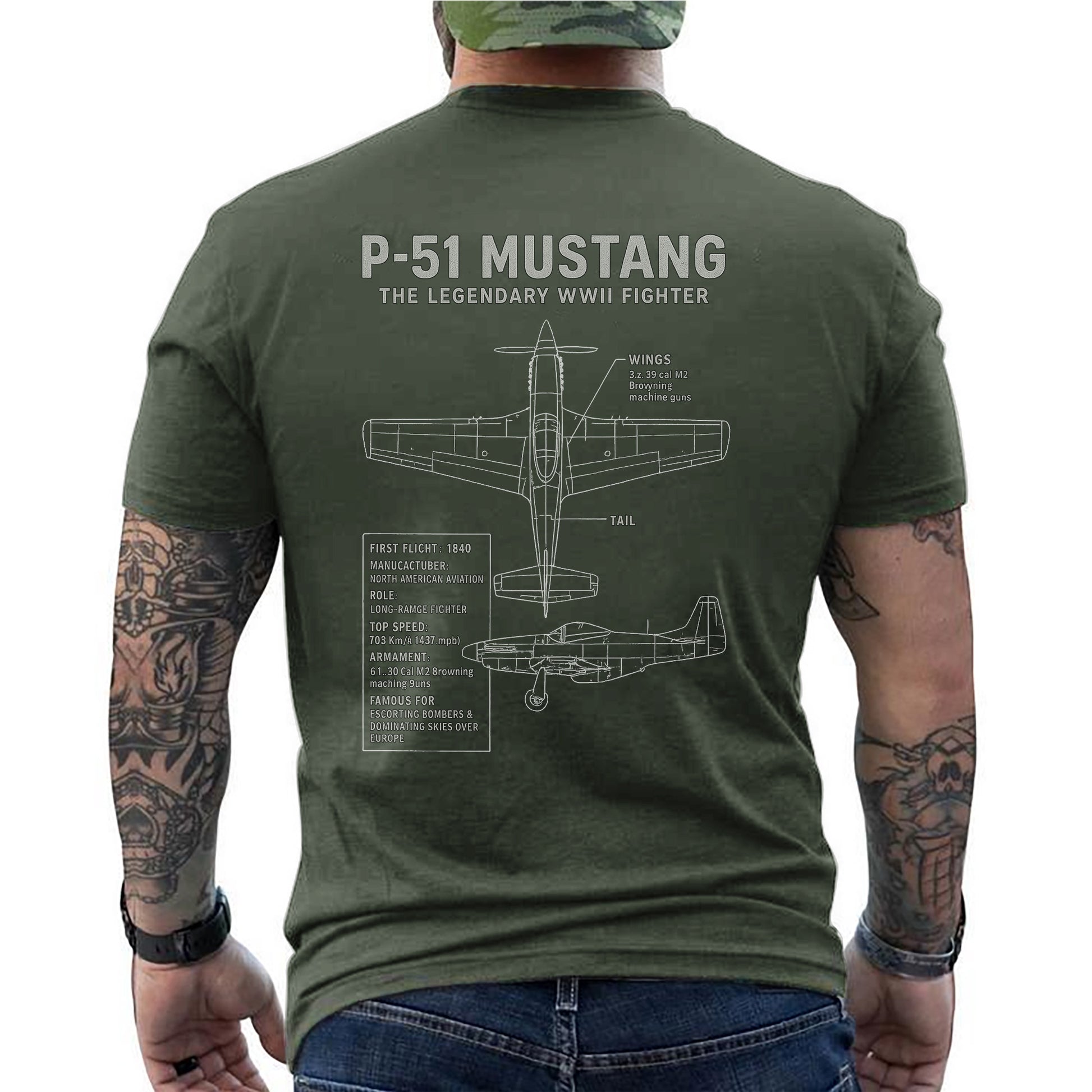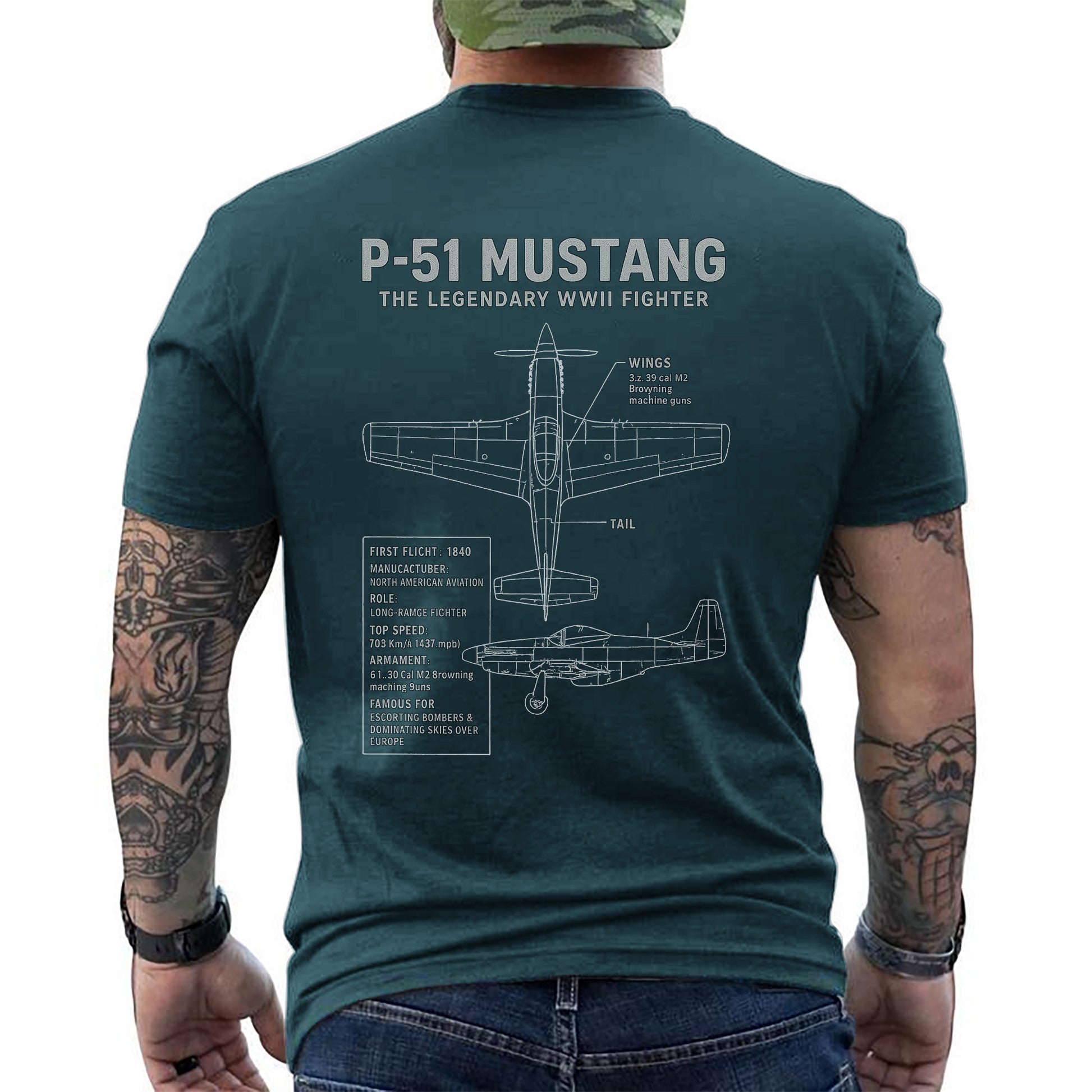 P-51 Mustang Legendary WWII Fighter Aircraft US Military Aviation Veteran Patriotic Tribute T-Shirt