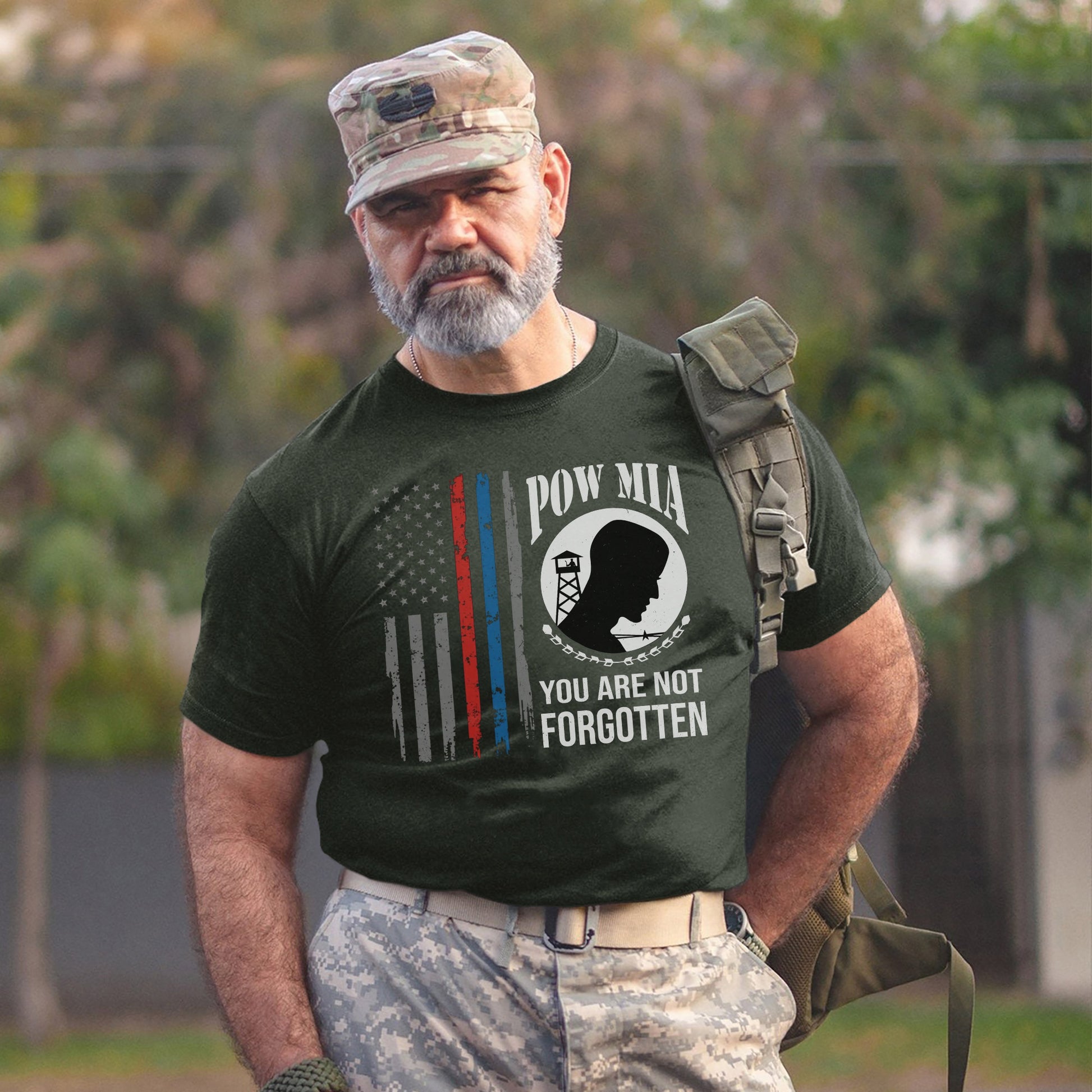 POW MIA Never Forgotten Honoring US Military Veterans With Pride and Remembrance T-Shirt